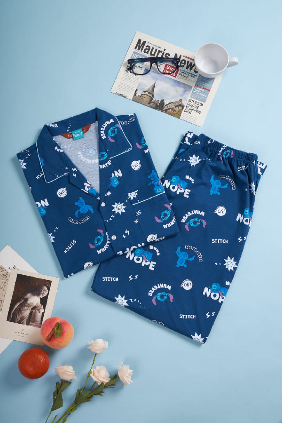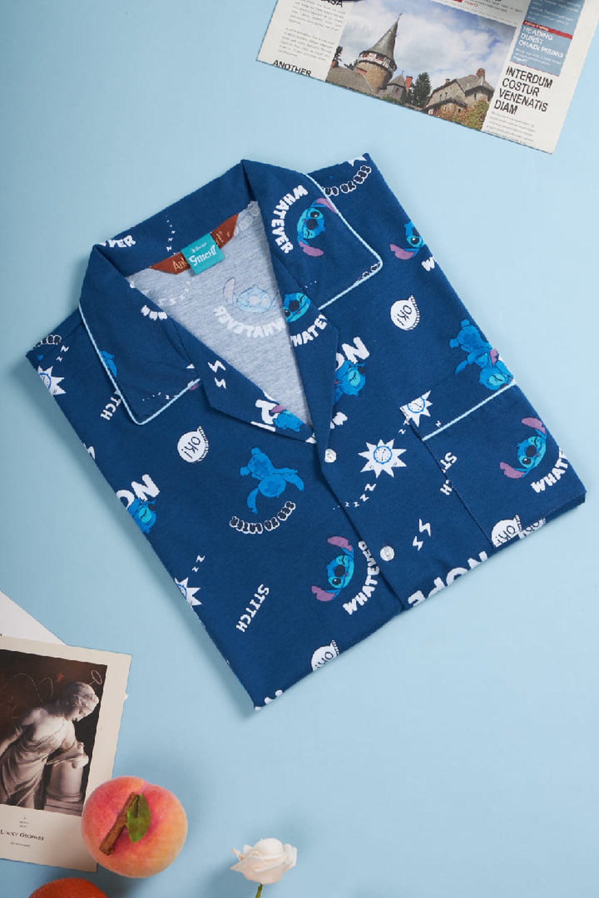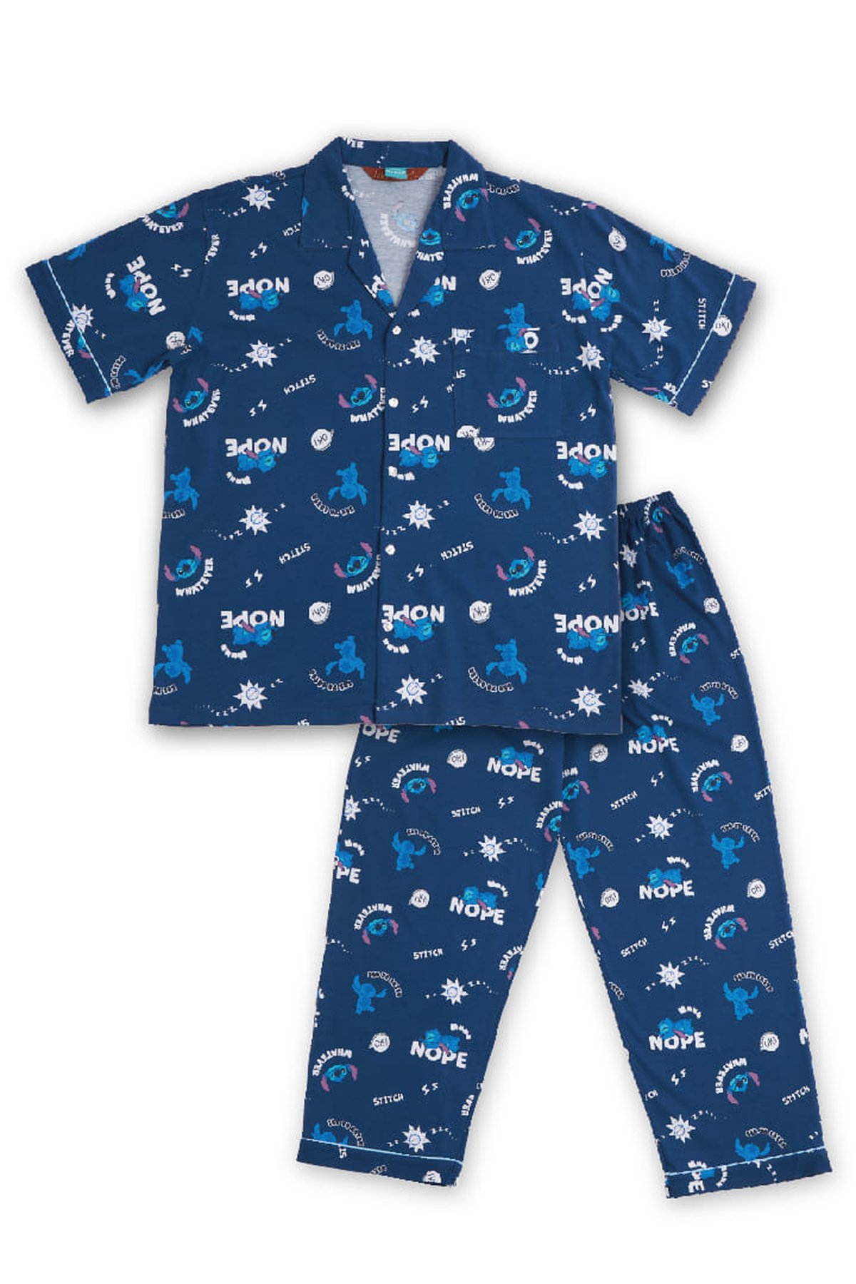 ชุดนอนผู้ชาย ANKER STUBERT เซตแขนสั้นขายาว Stitch : Just chill สีกรม