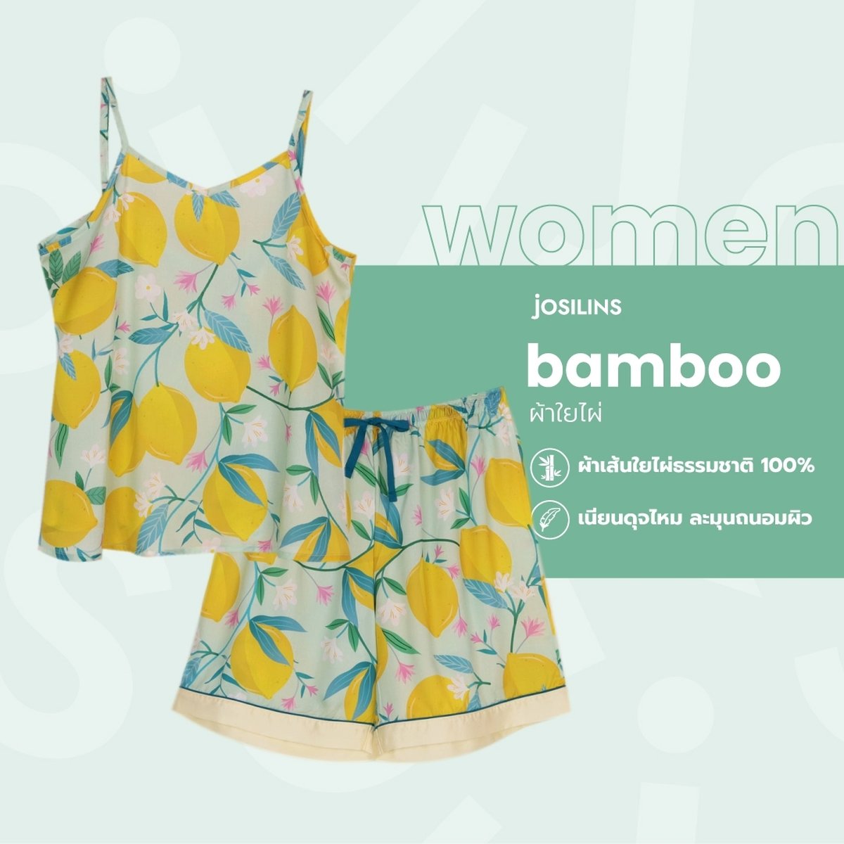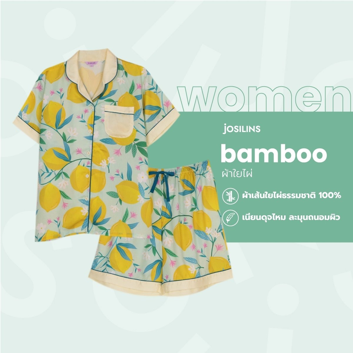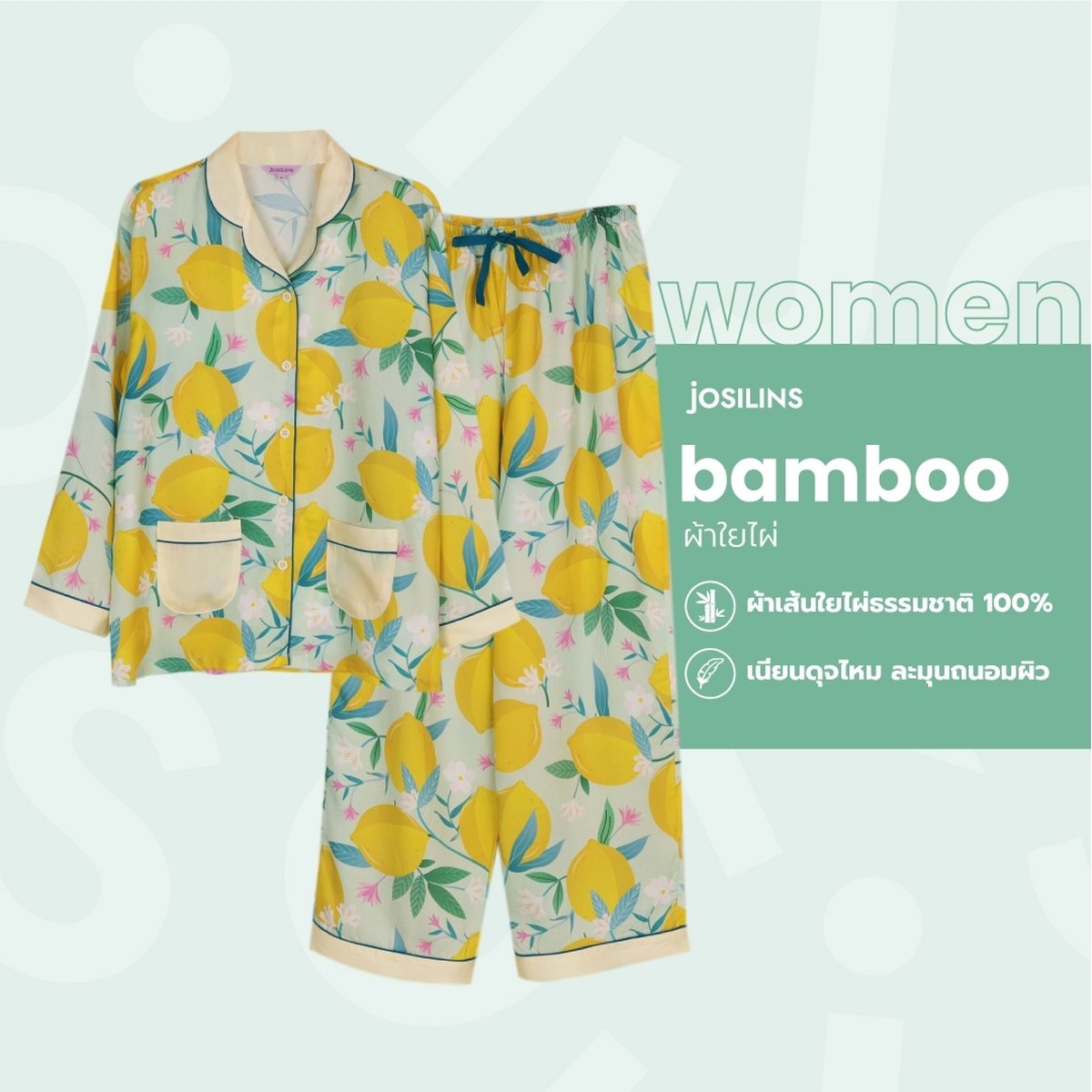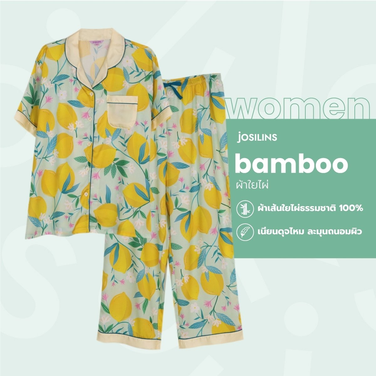 ชุดนอนผู้หญิง JOSILINS คอลเลคชัน Lemon Fresh ไซส์ F และไซส์ พลัส พลัสพลัส ผ้าแบมบู