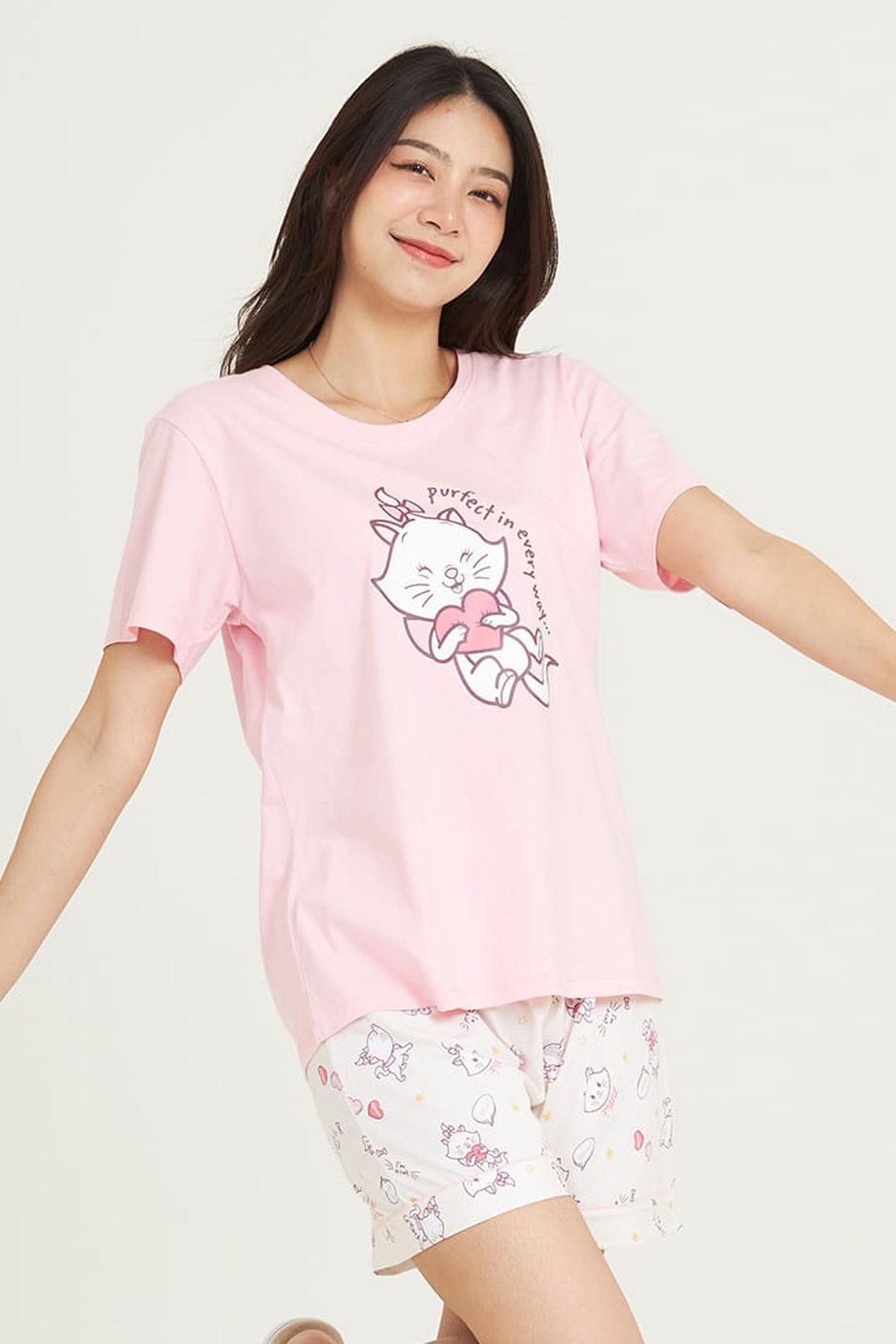 ชุดนอนผู้หญิง JOSILINS เซตเสื้อยืดขาสั้น Marie Purfect in Every Way สีโอรส