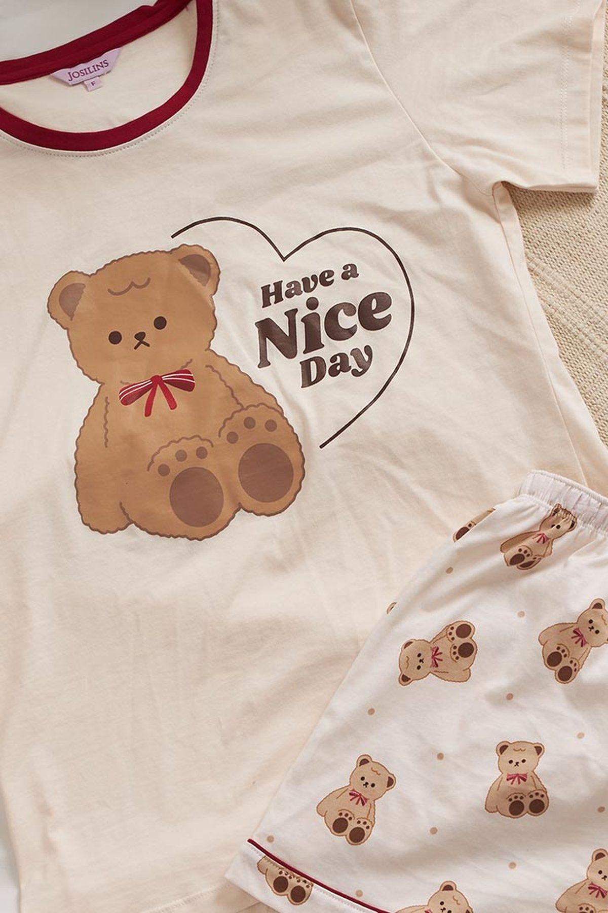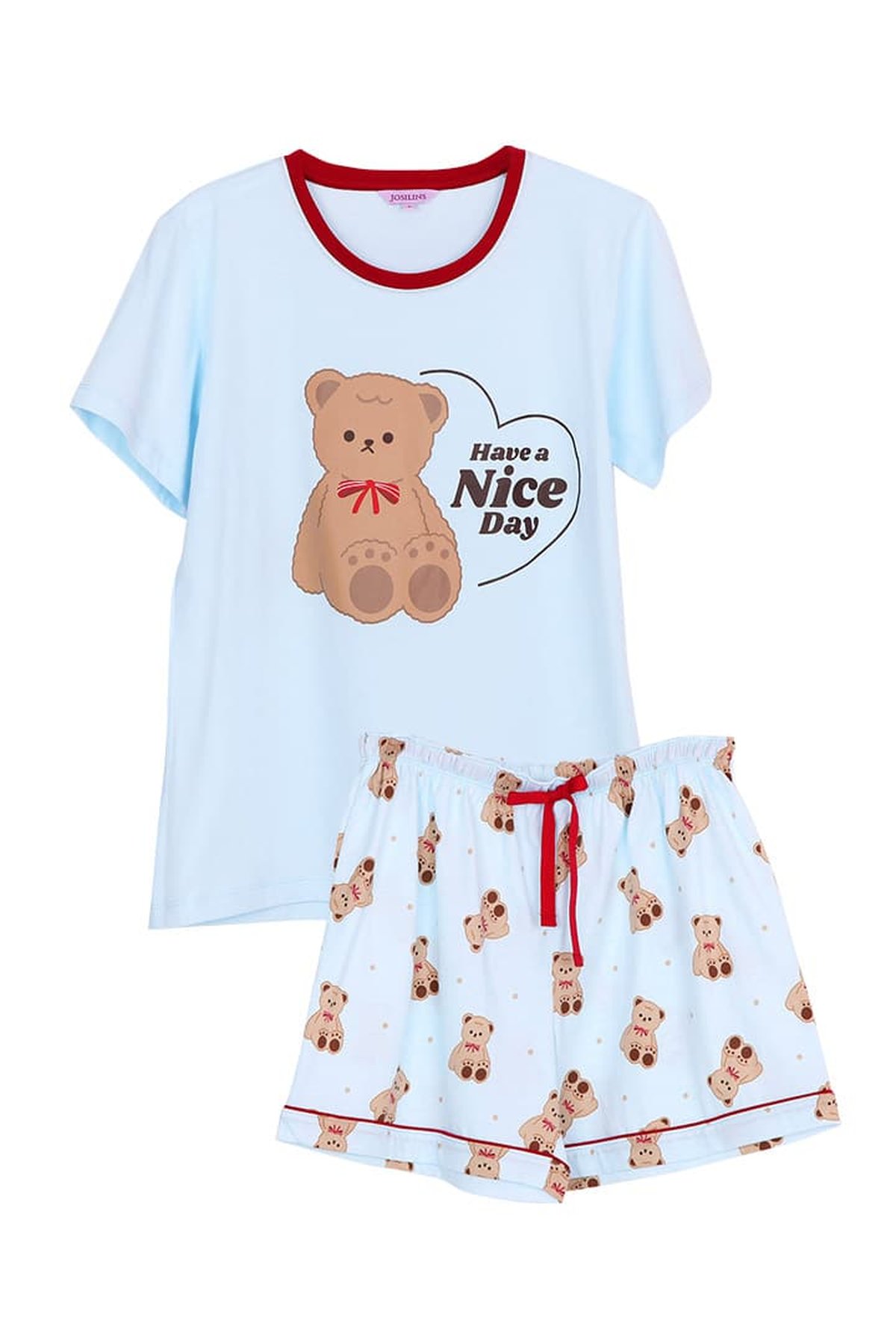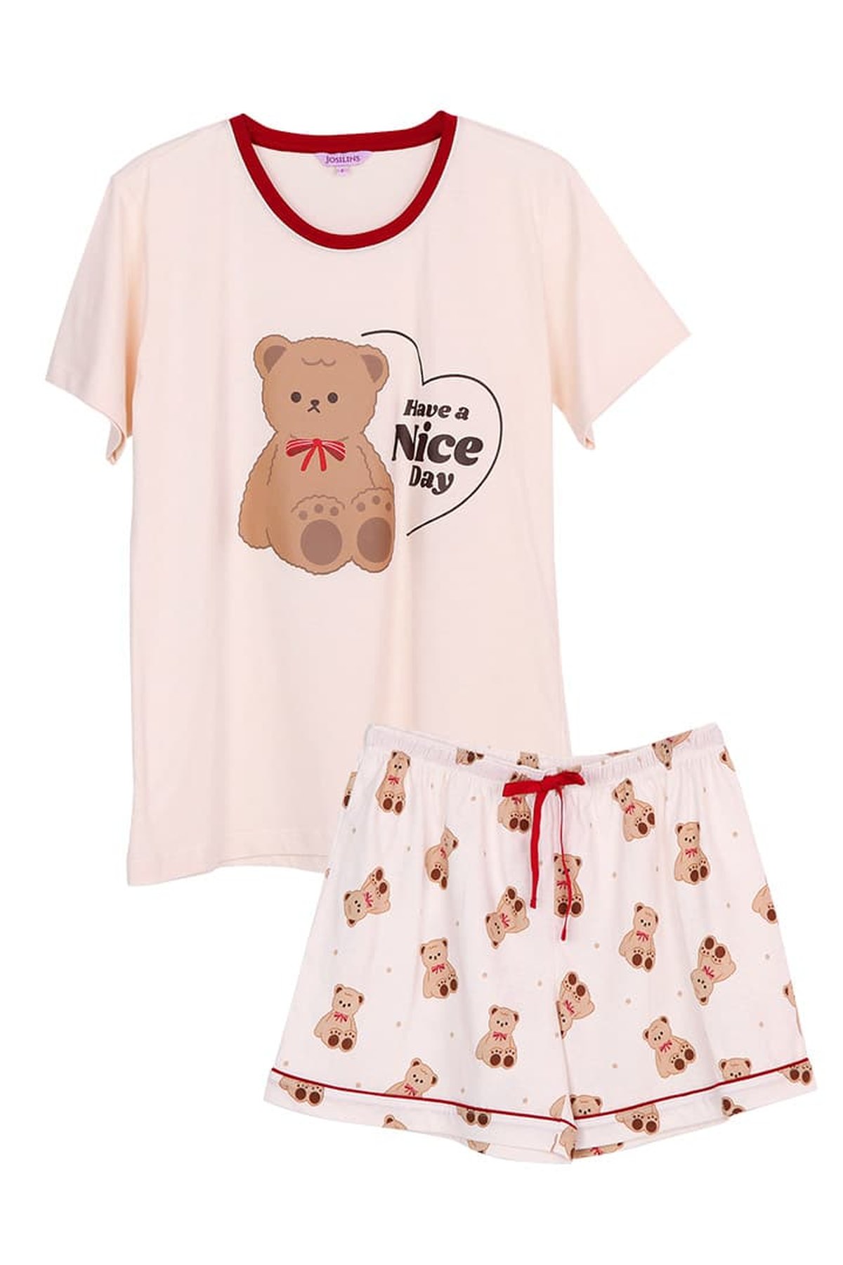 ชุดนอนผู้หญิง JOSILINS เซตเสื้อยืดขาสั้น Teddy Bear สีฟ้า สีครีม