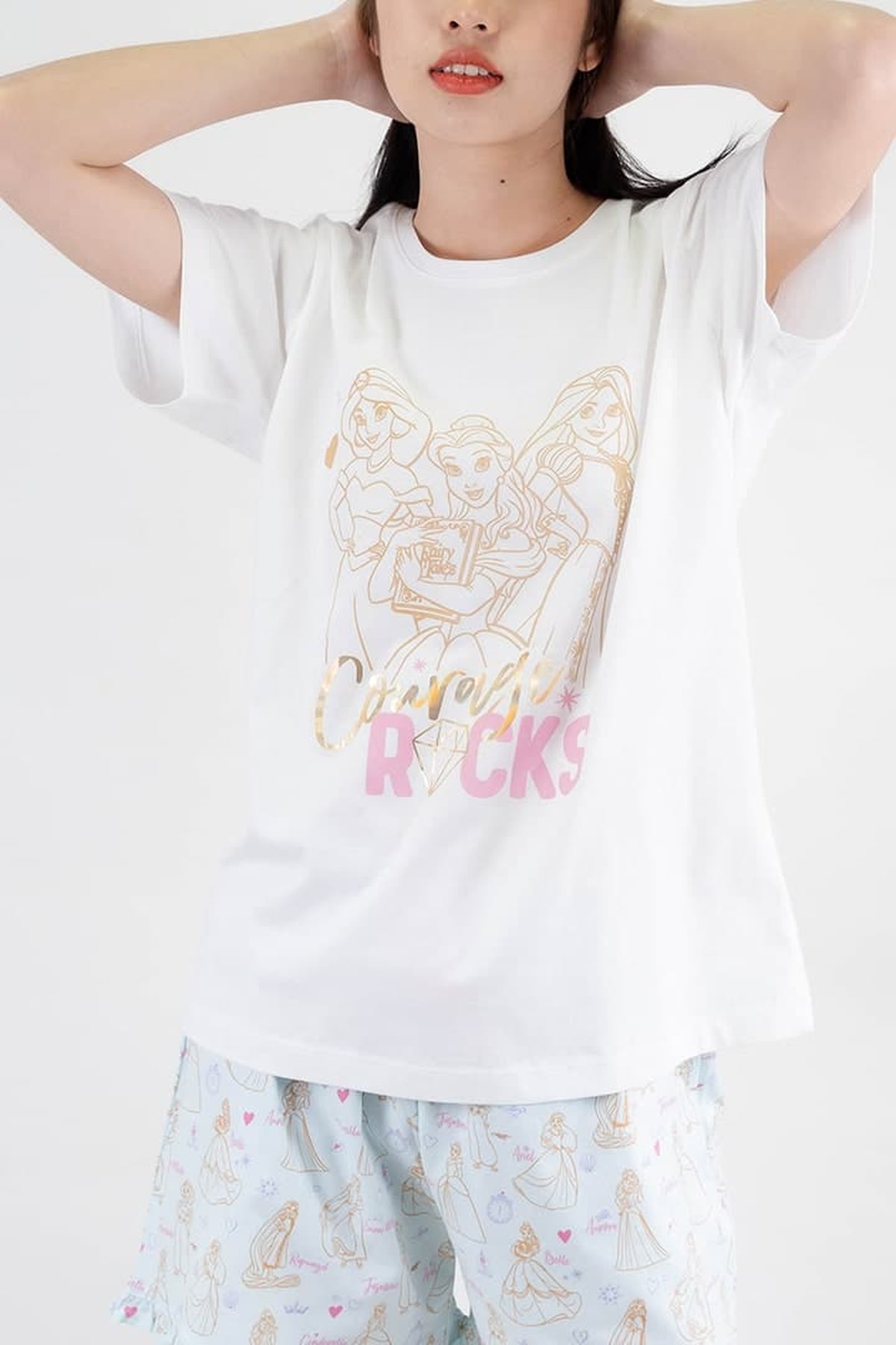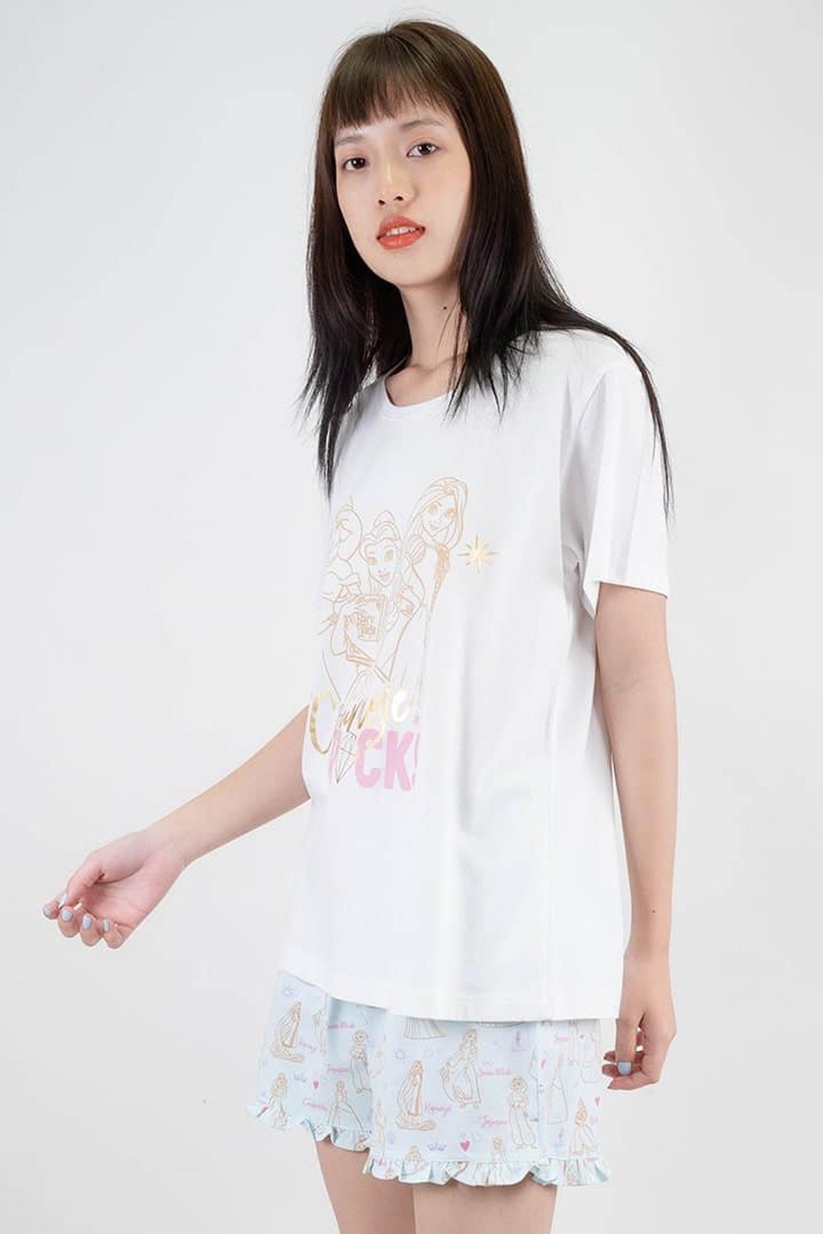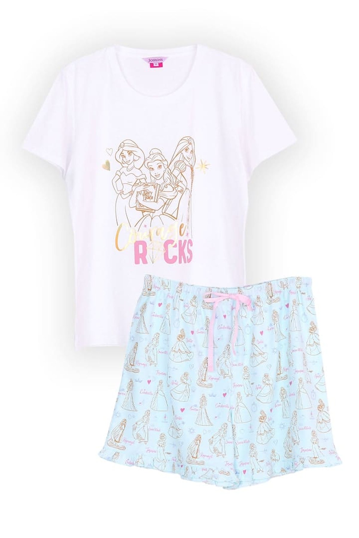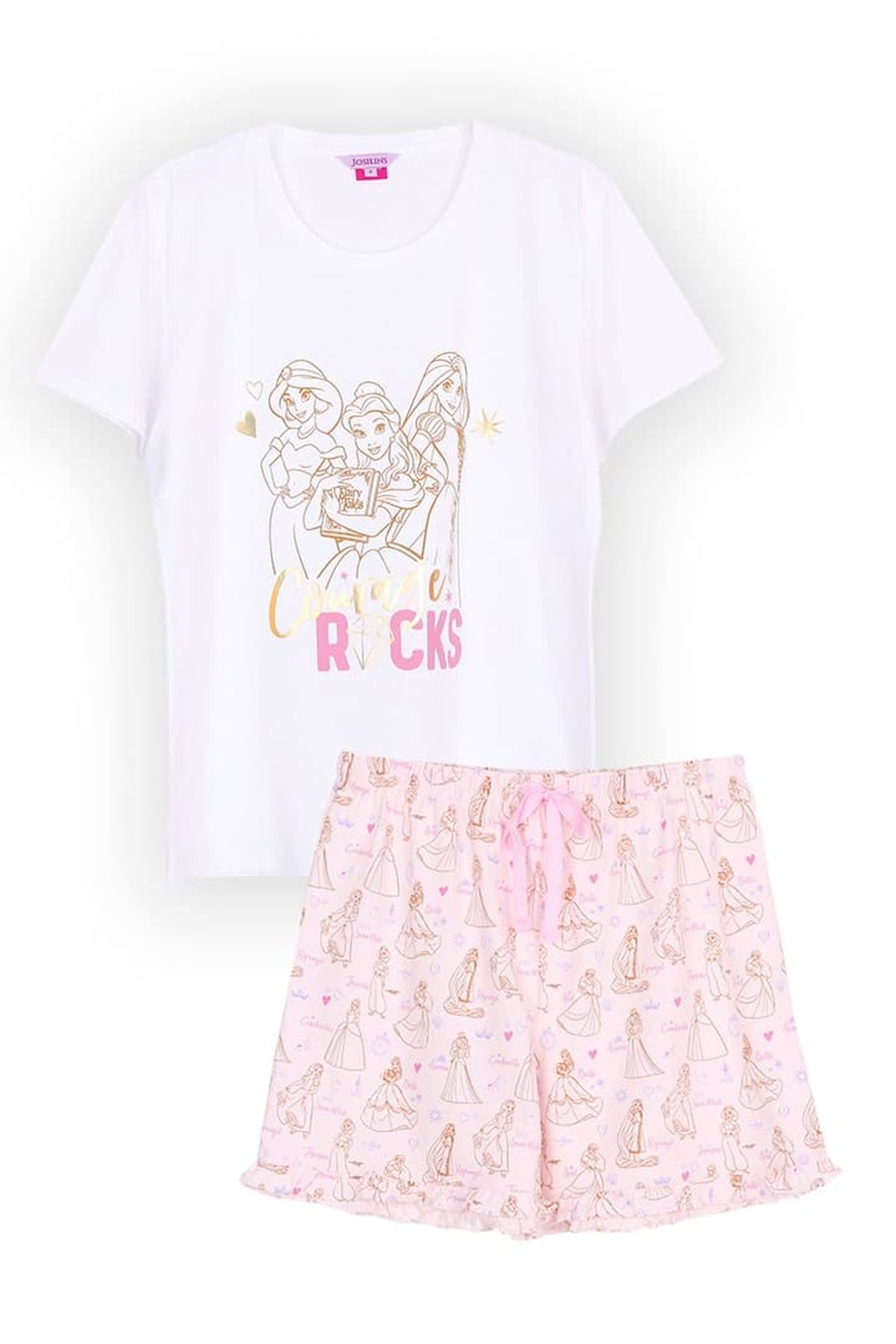 ชุดนอนผู้หญิง JOSILINS เซตเสื้อยืดขาสั้น Disney Ultimate Princess สีขาว