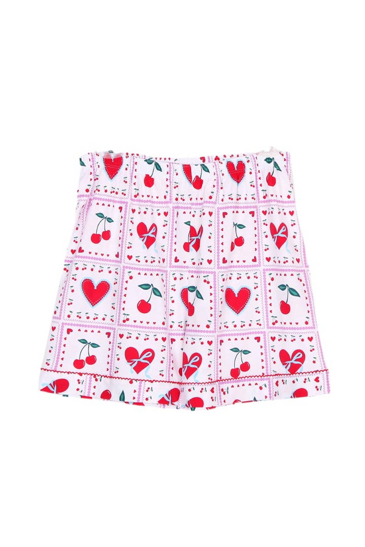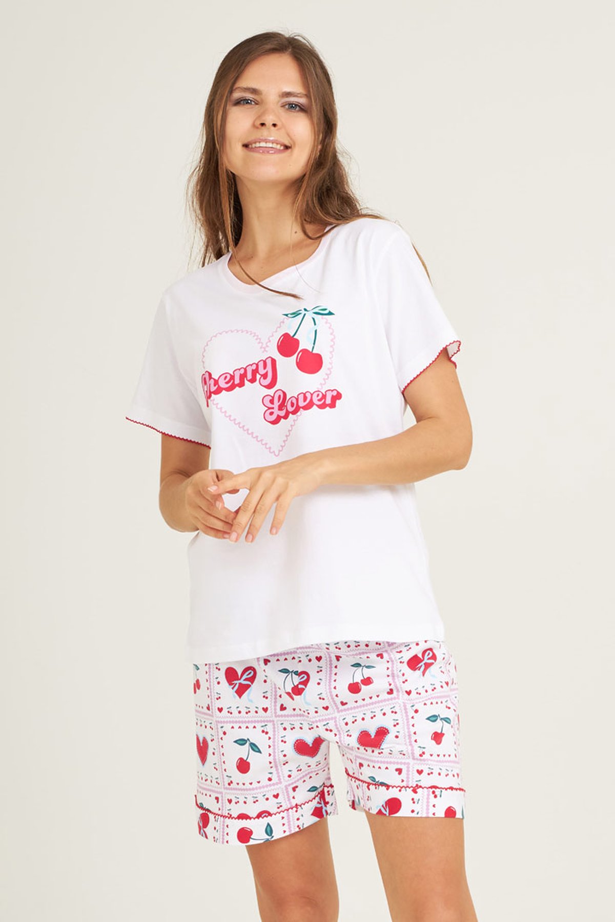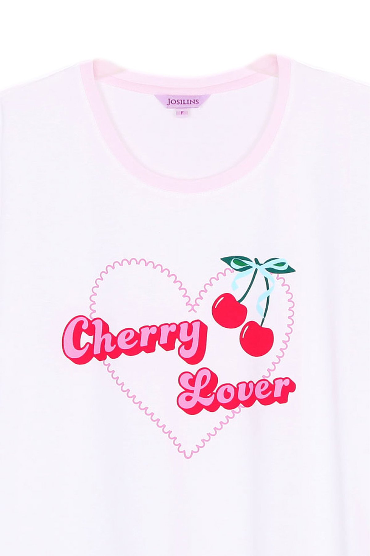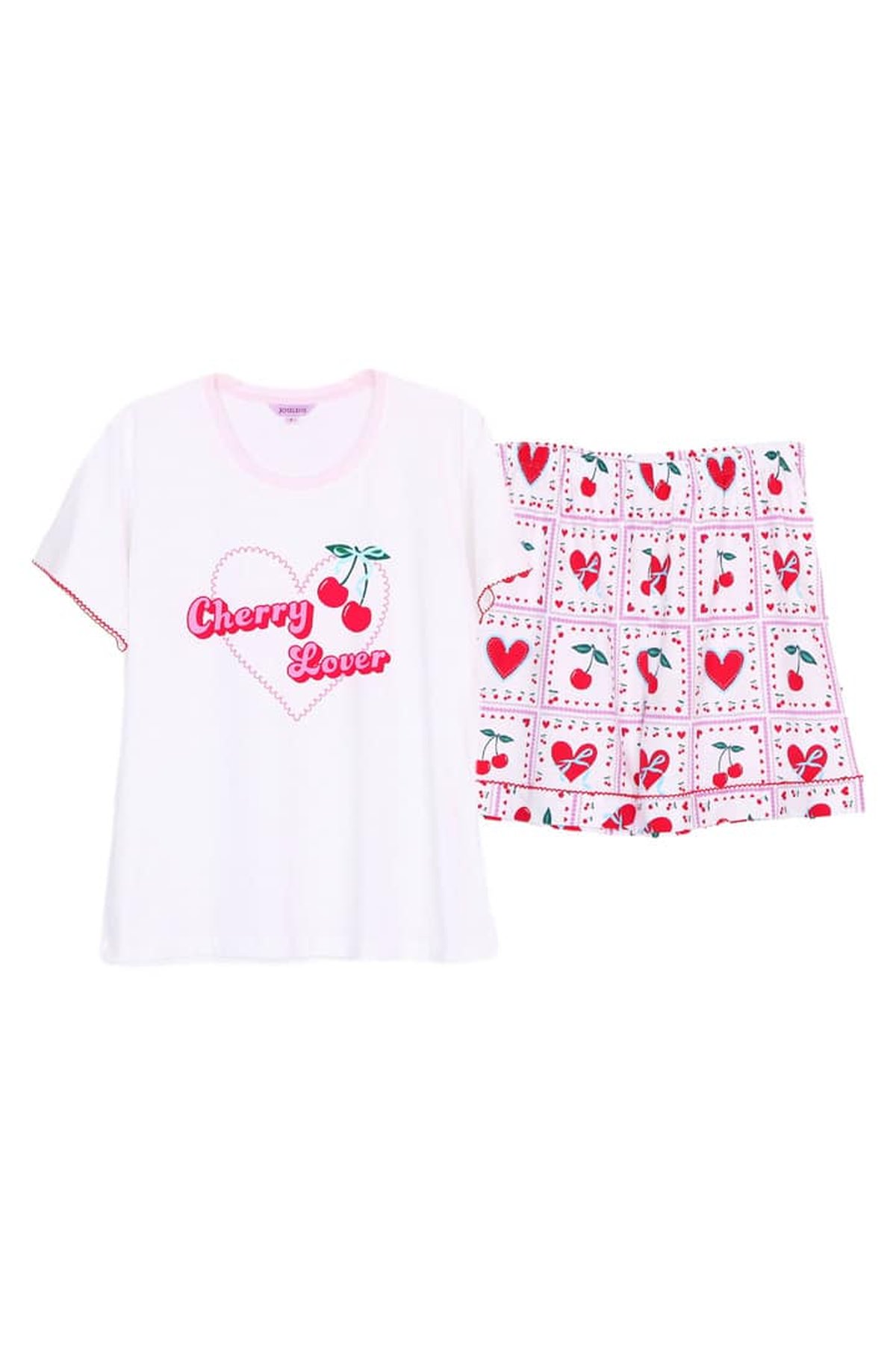 ชุดนอนผู้หญิง JOSILINS เซตเสื้อยืดขาสั้น Cherry Lover สีขาว