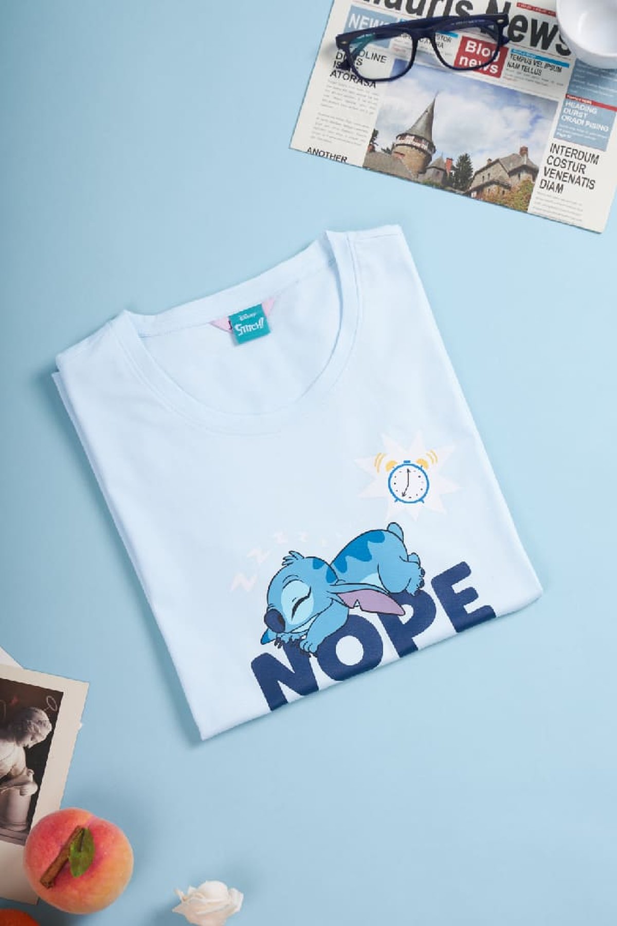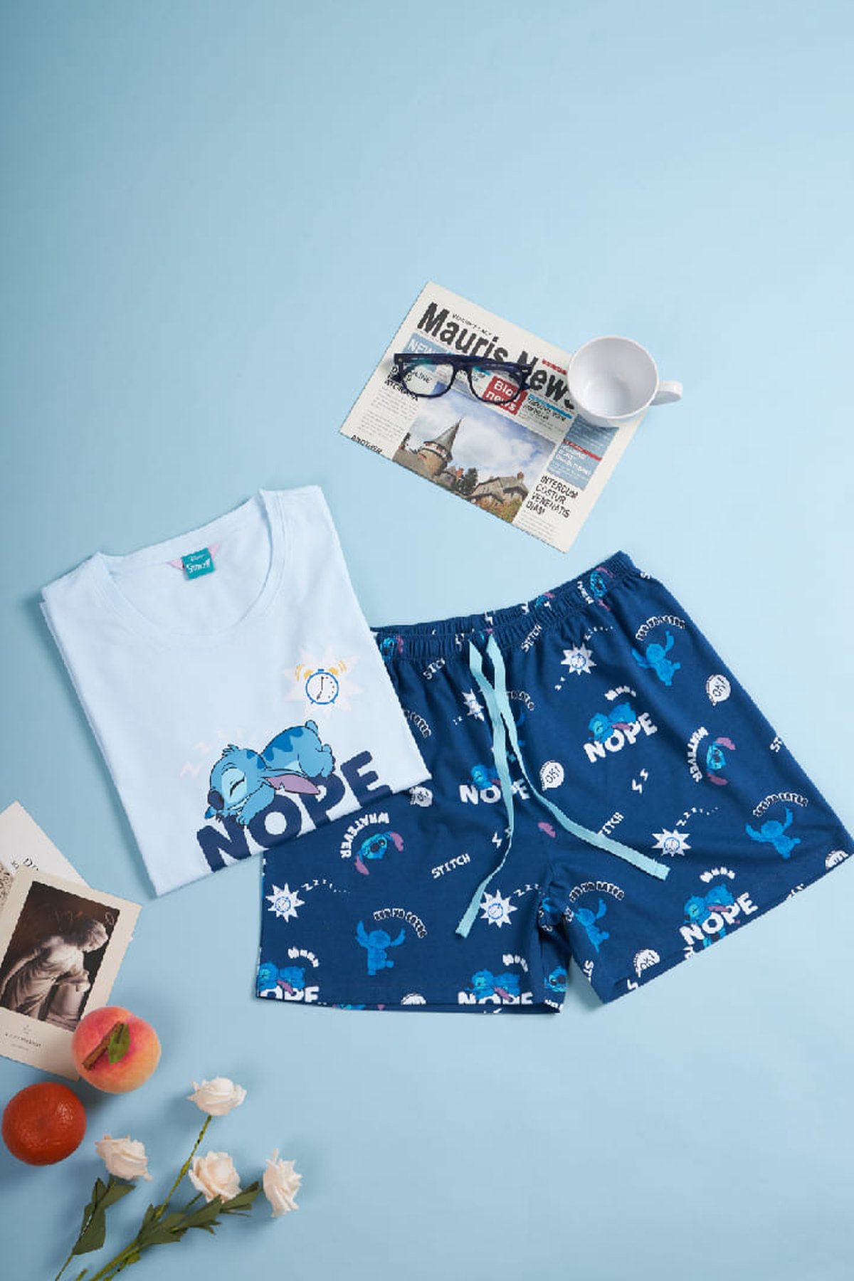 ชุดนอนผู้หญิง JOSILINS เซตเสื้อยืดขาสั้น Stitch : Just chill สีฟ้า