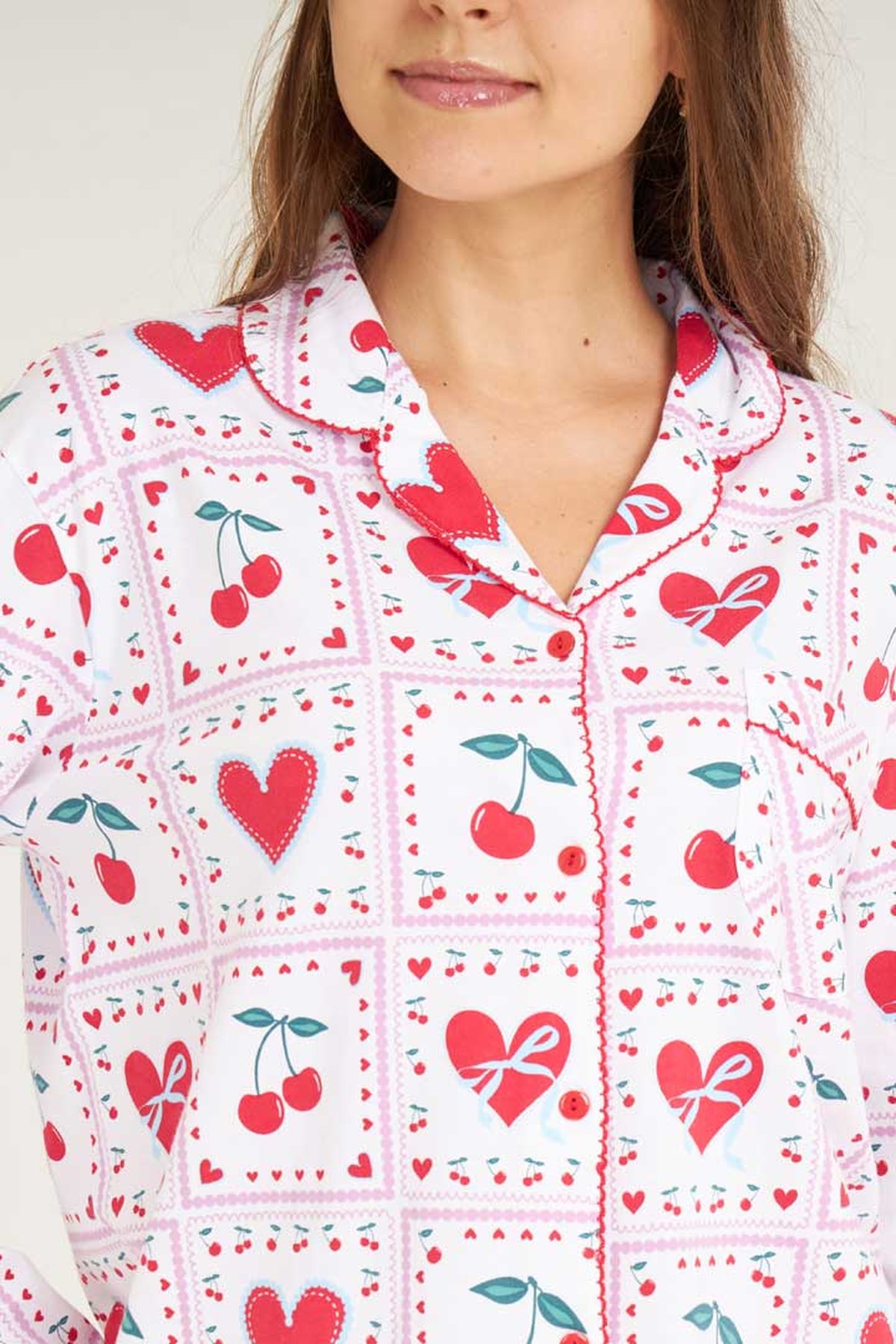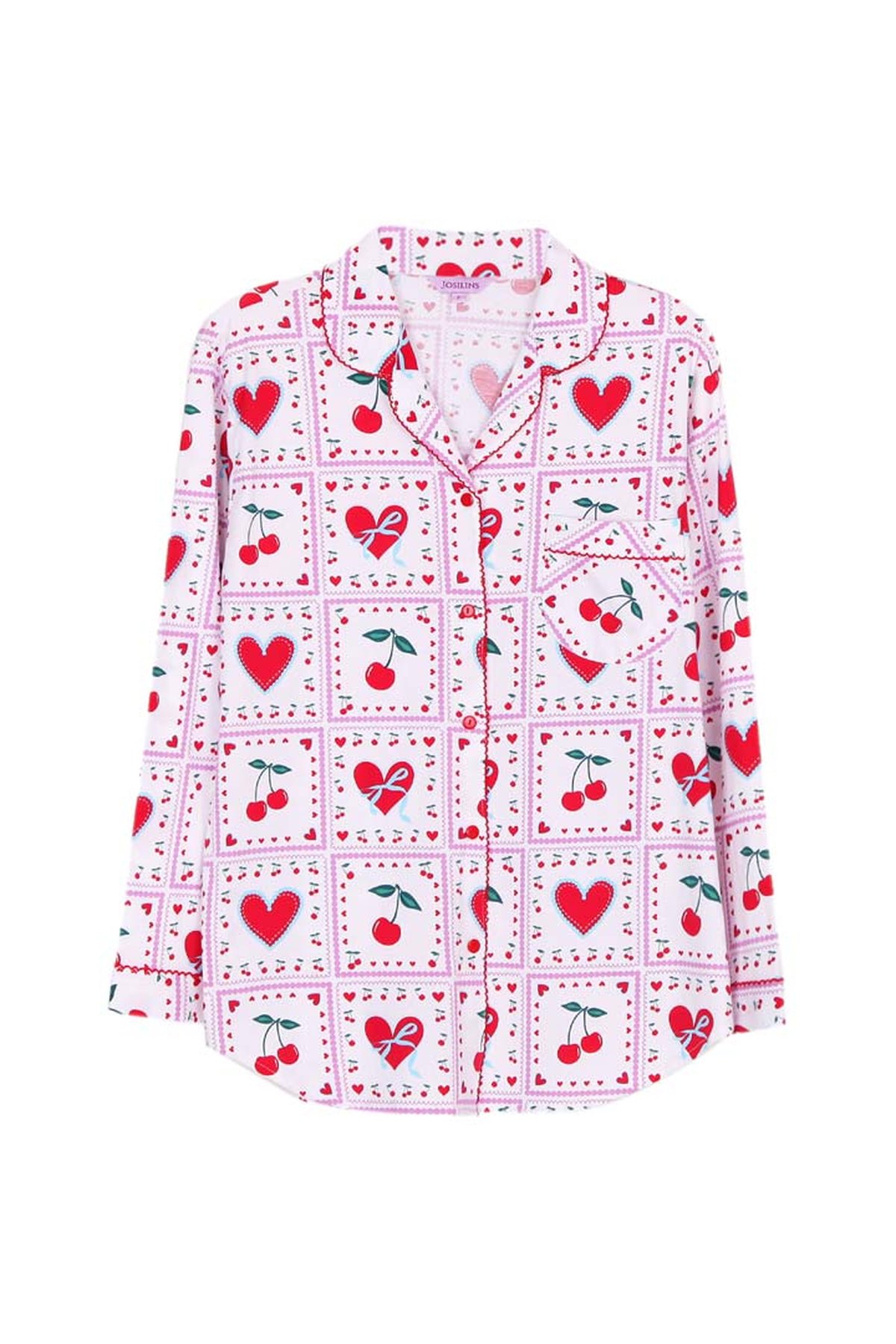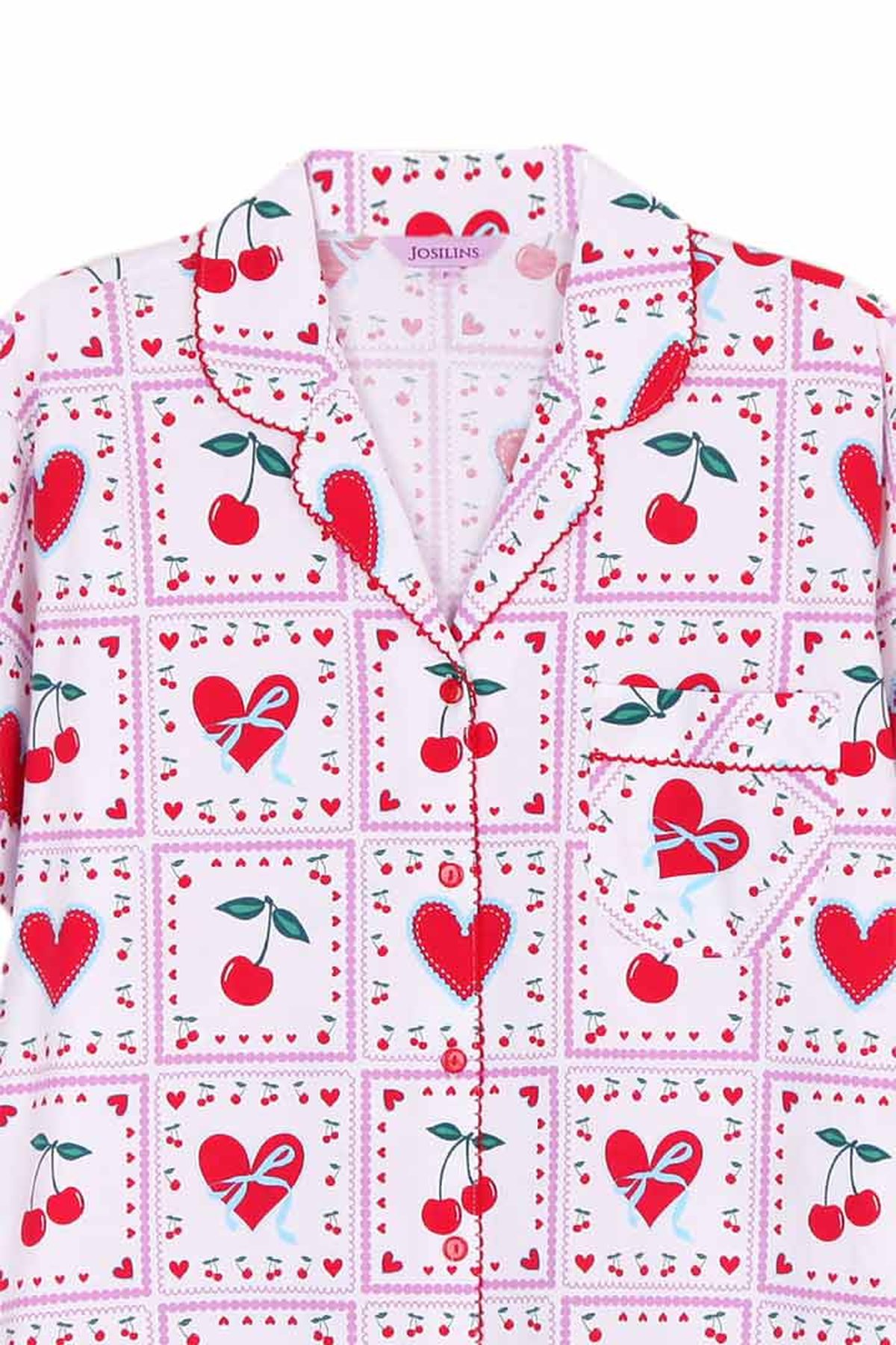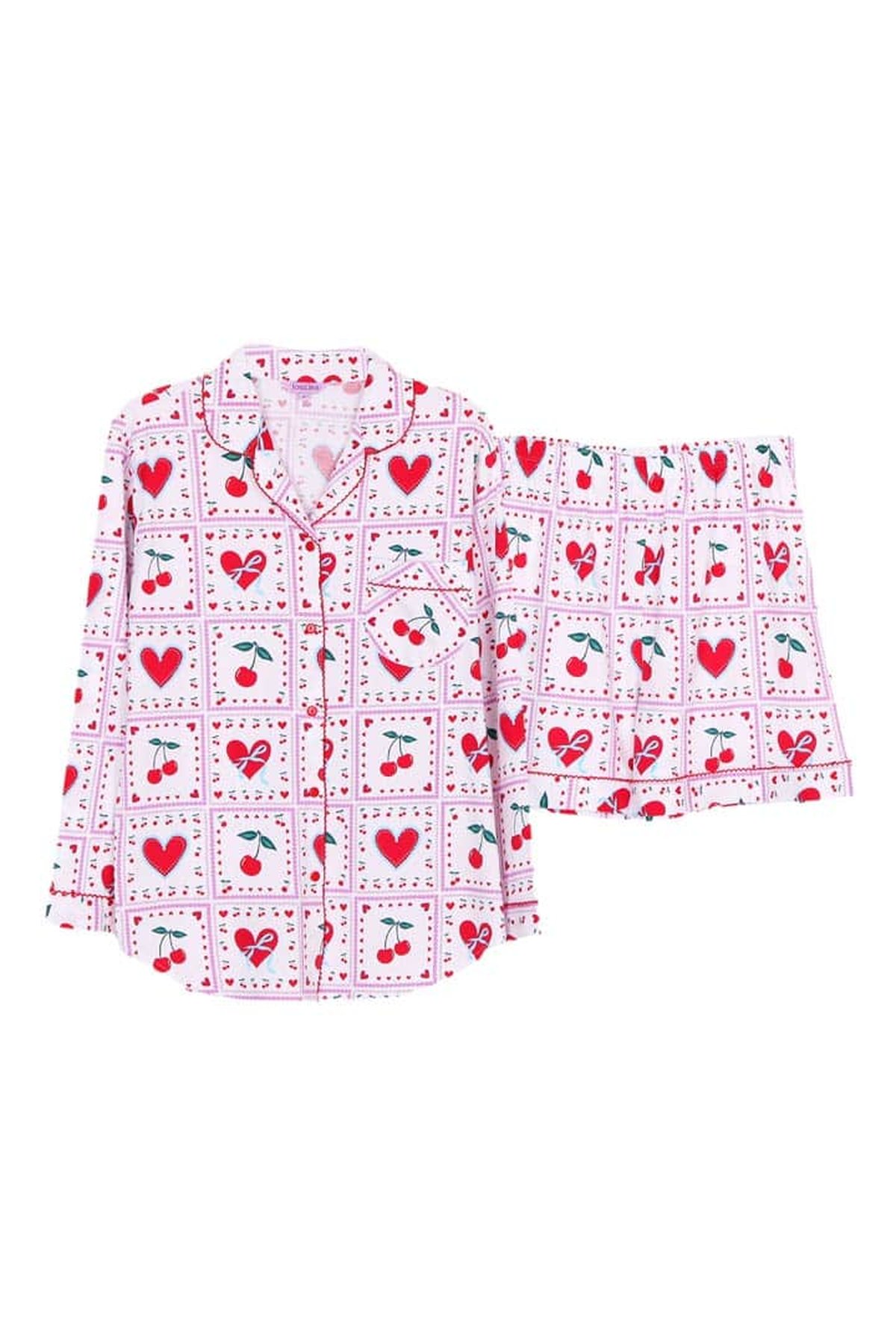 ชุดนอนผู้หญิง JOSILINS เซตแขนยาวขาสั้น Cherry Lover สีขาว
