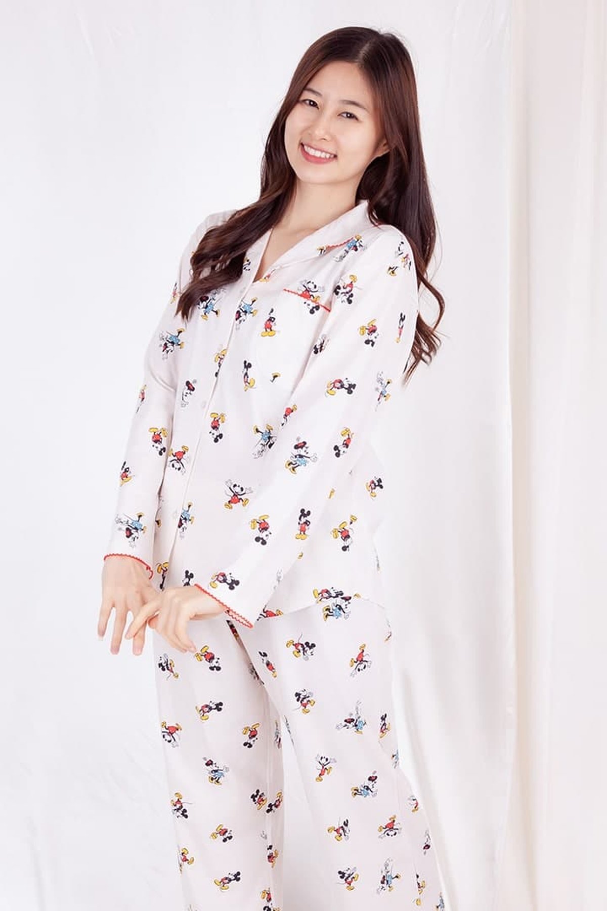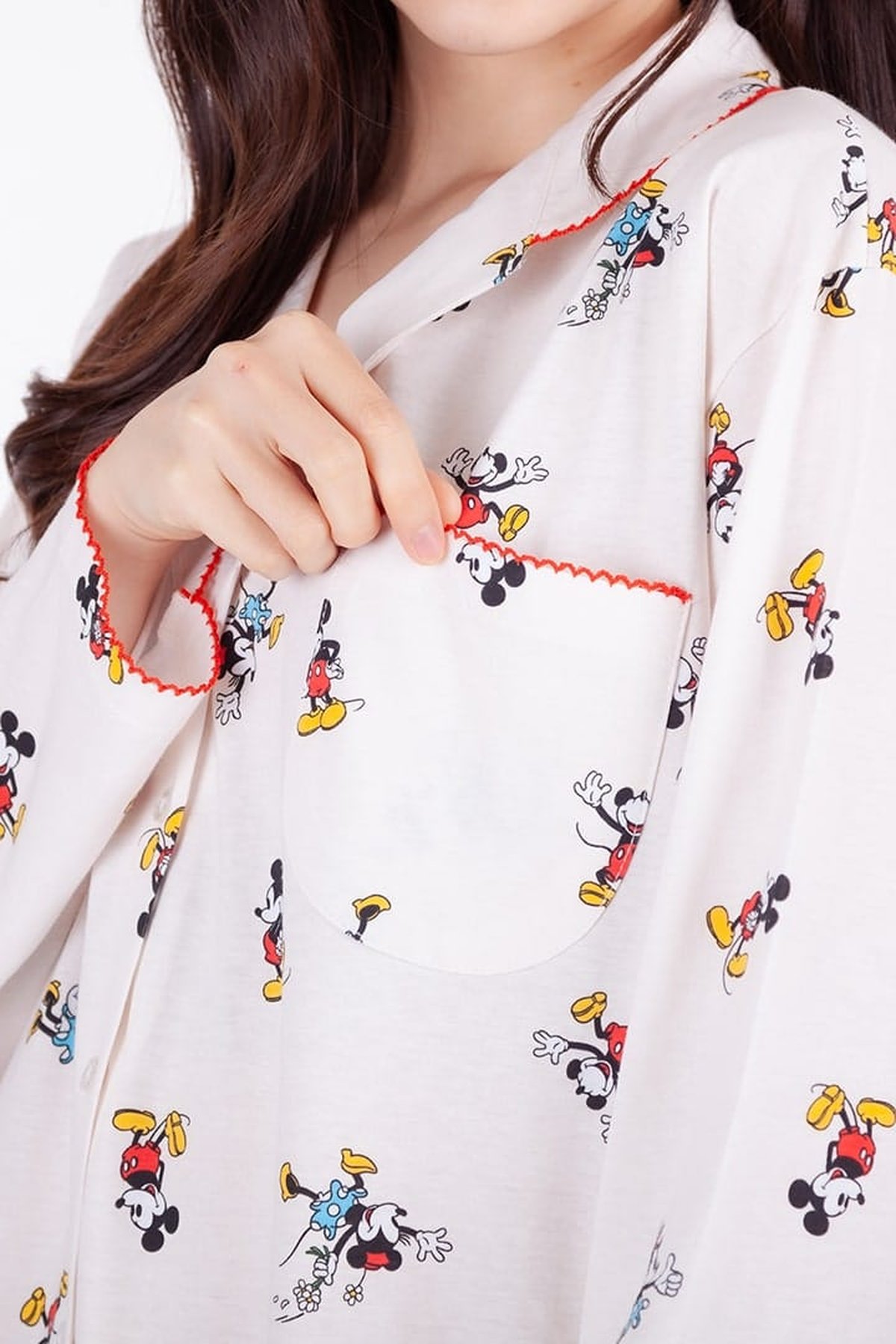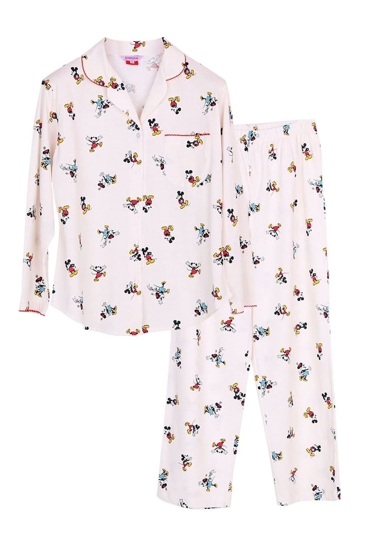 ชุดนอนผู้หญิง JOSILINS เซตแขนยาวขายาว Mickey Mouse actart collection สีครีม