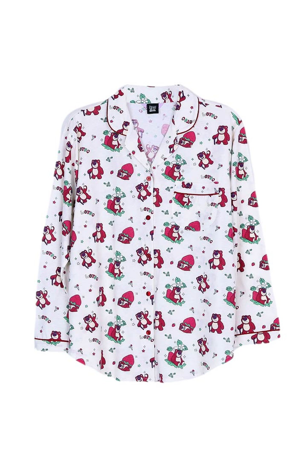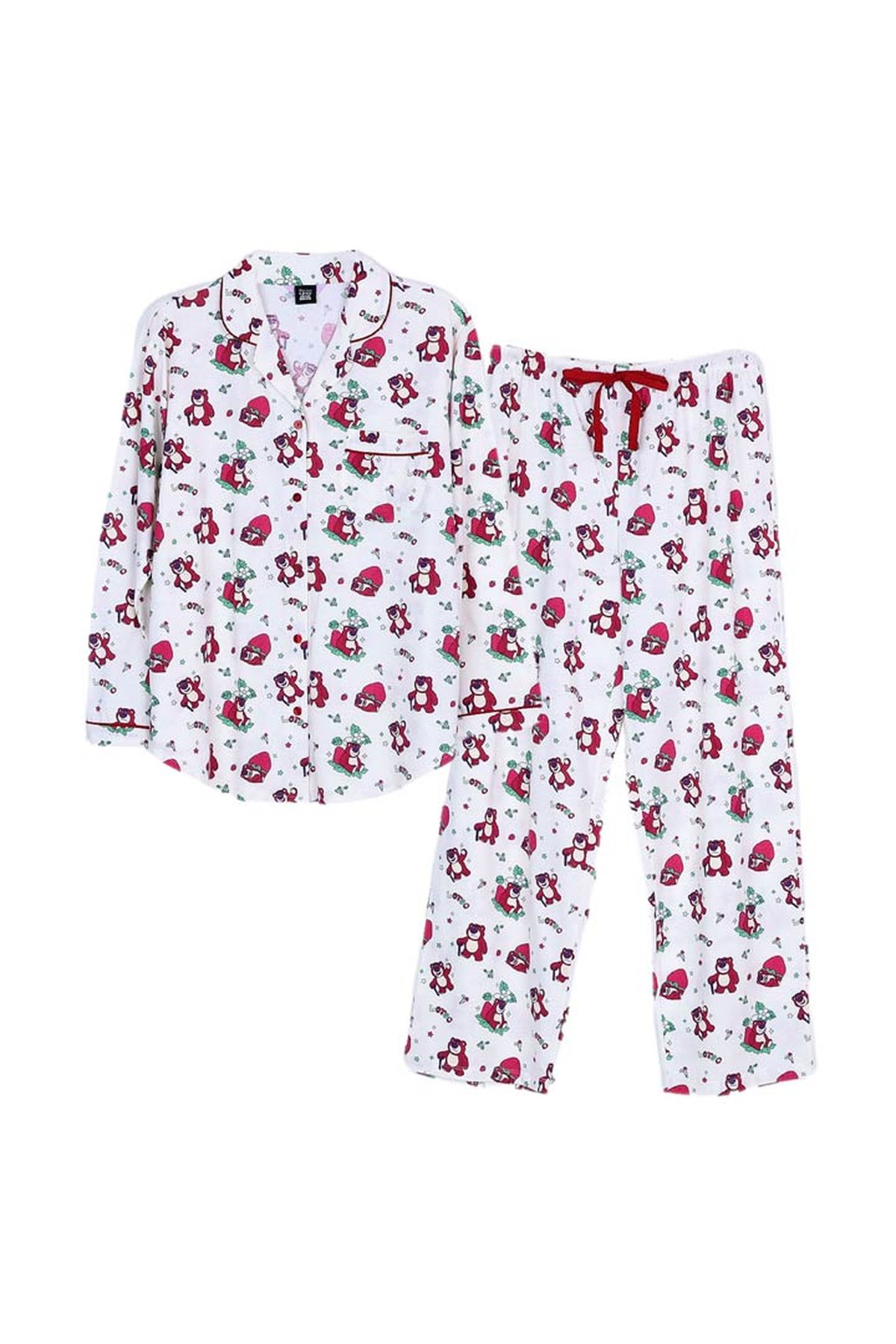 ชุดนอนผู้หญิง JOSILINS เซตแขนยาวขายาว Toy Story Lotso Strawberry Fest สีขาว