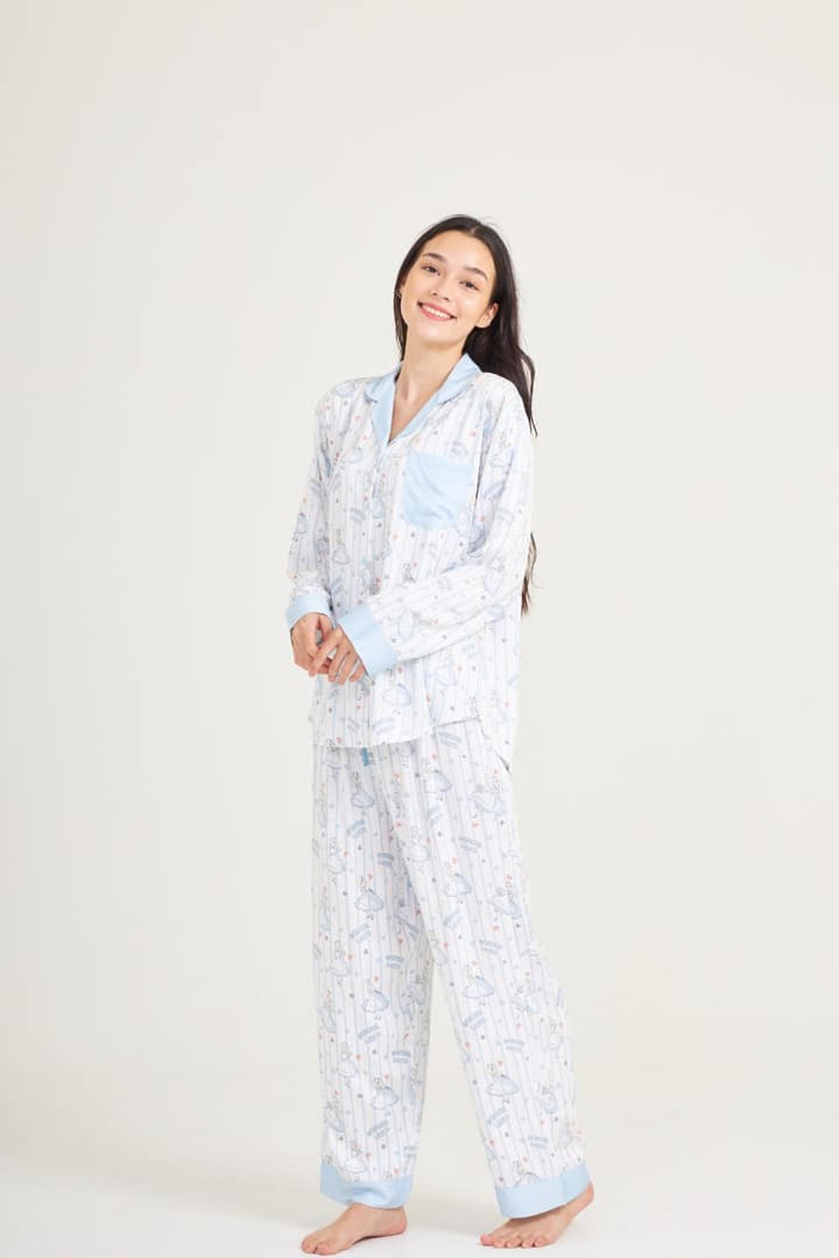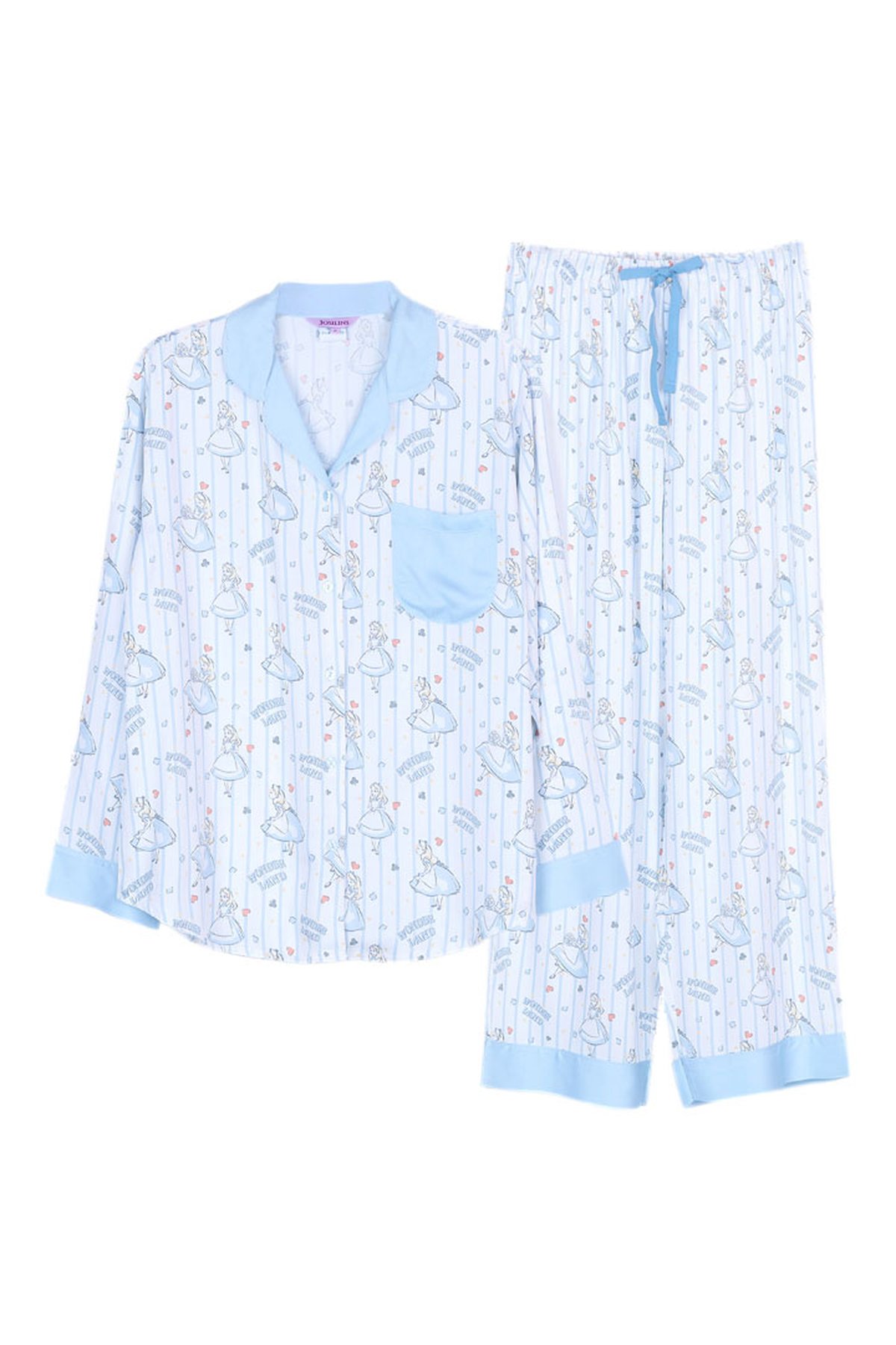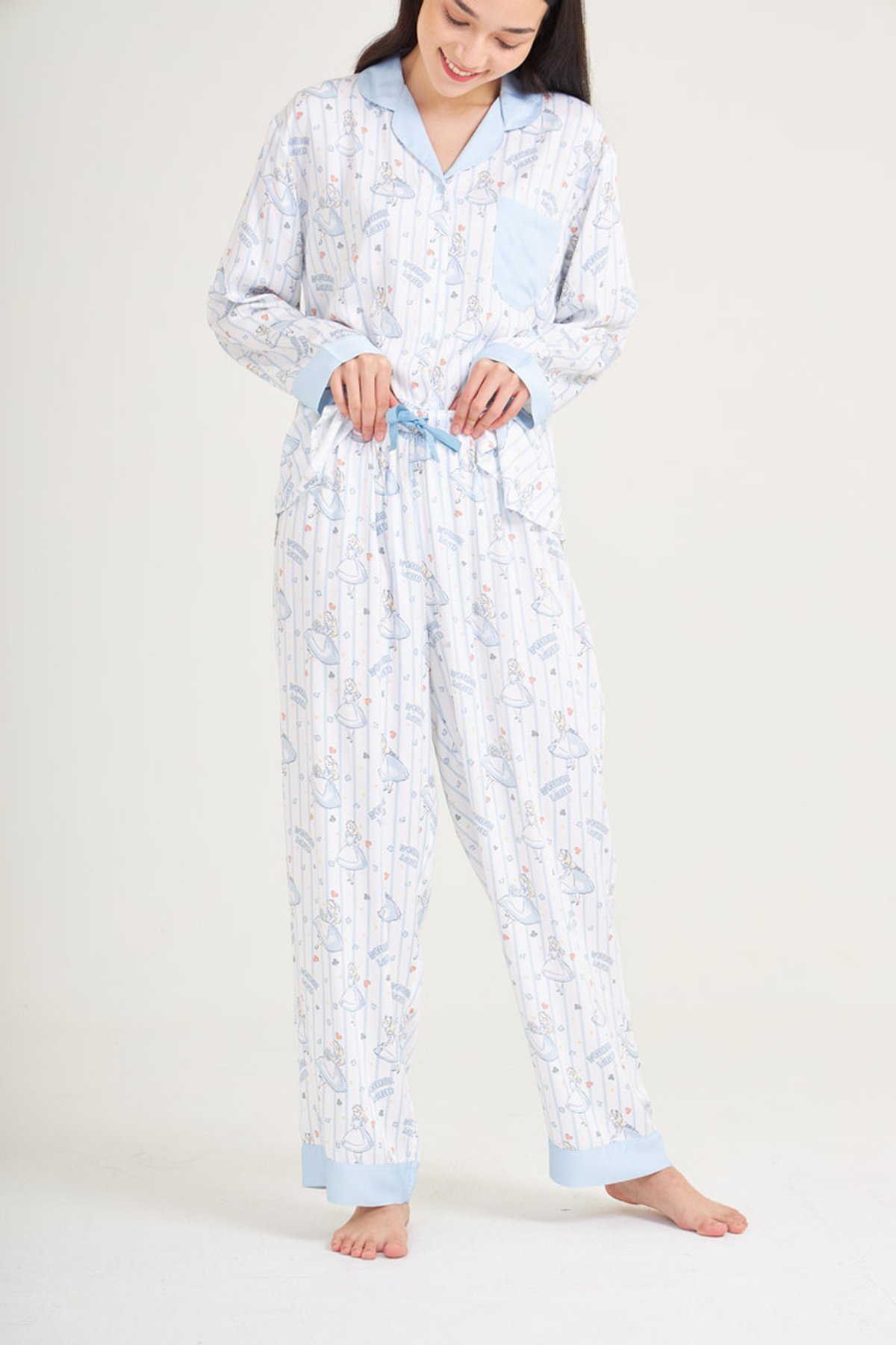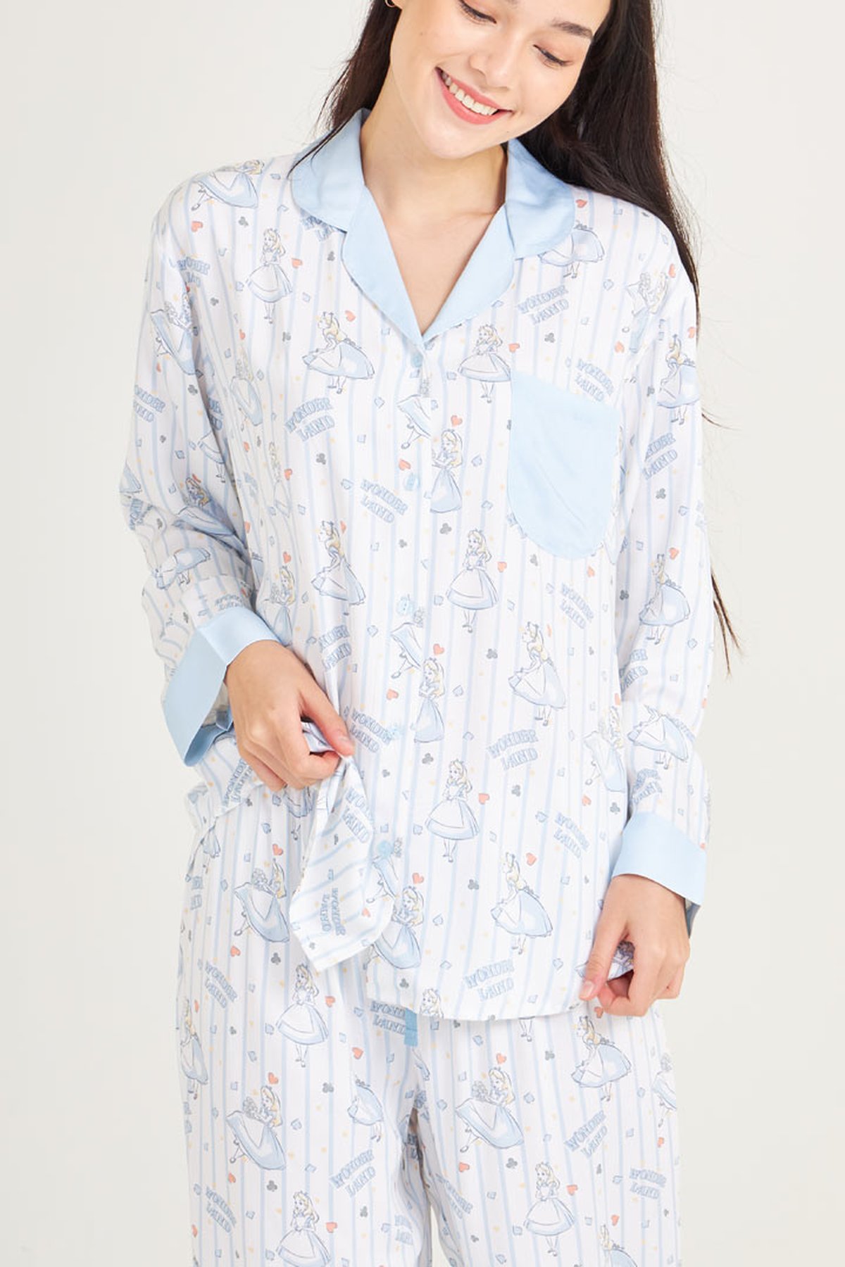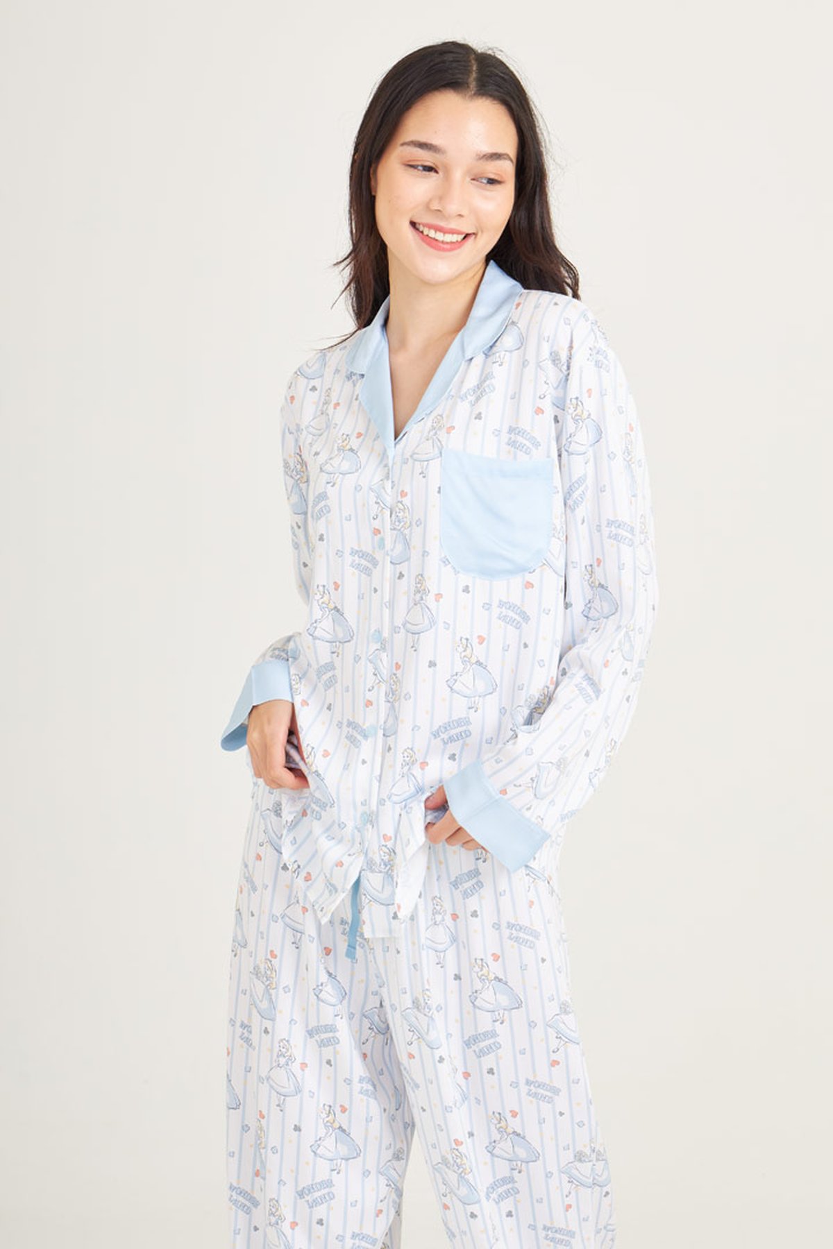 ชุดนอนผู้หญิง JOSILINS เซตแขนยาวขายาว Alice in Wonderland สีขาว