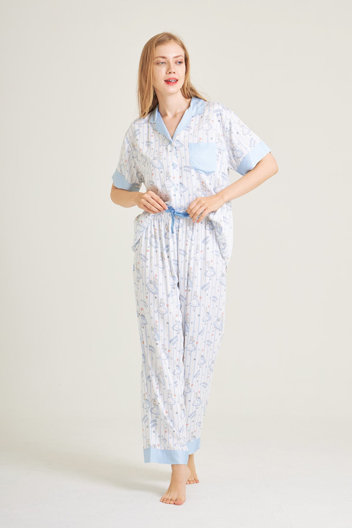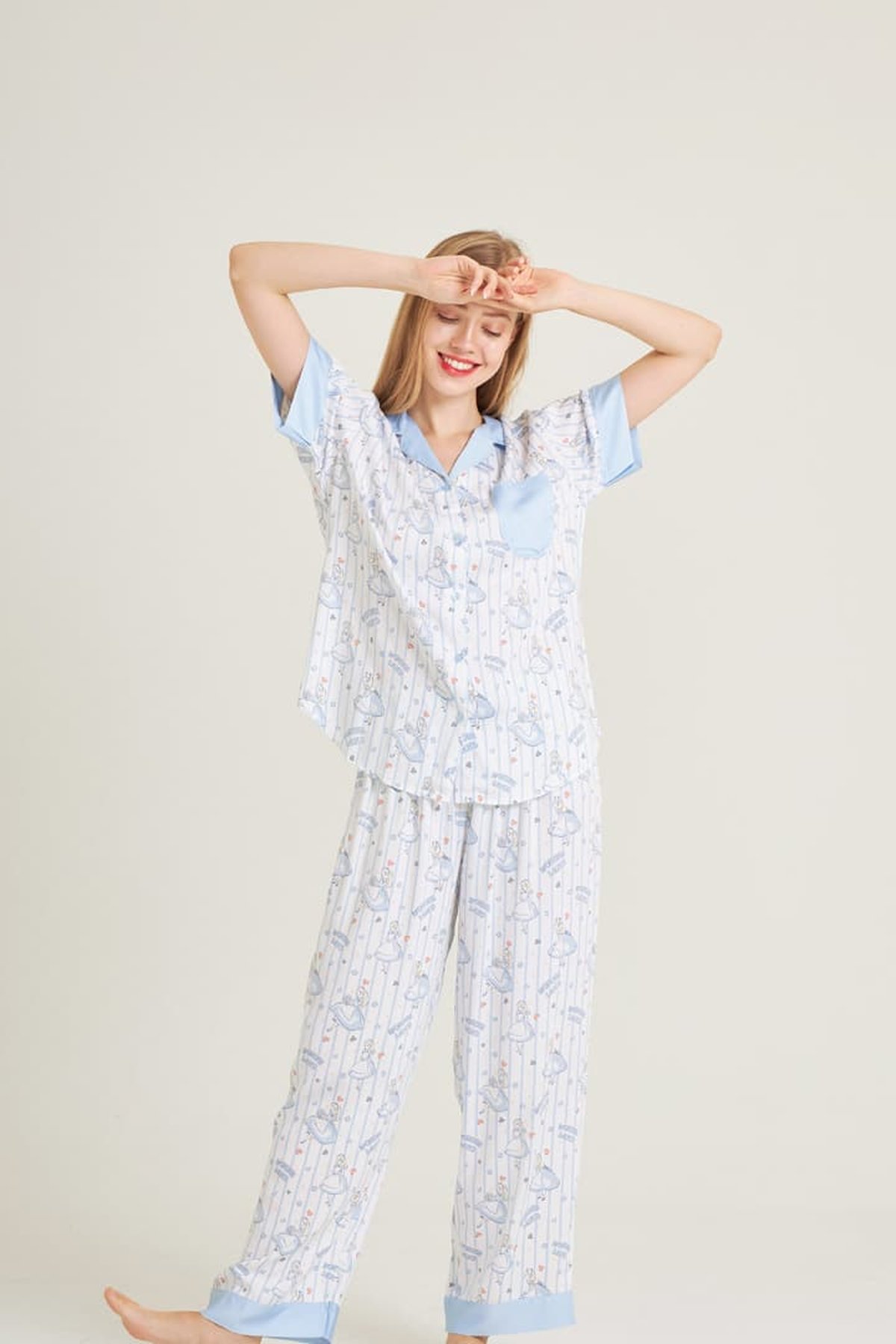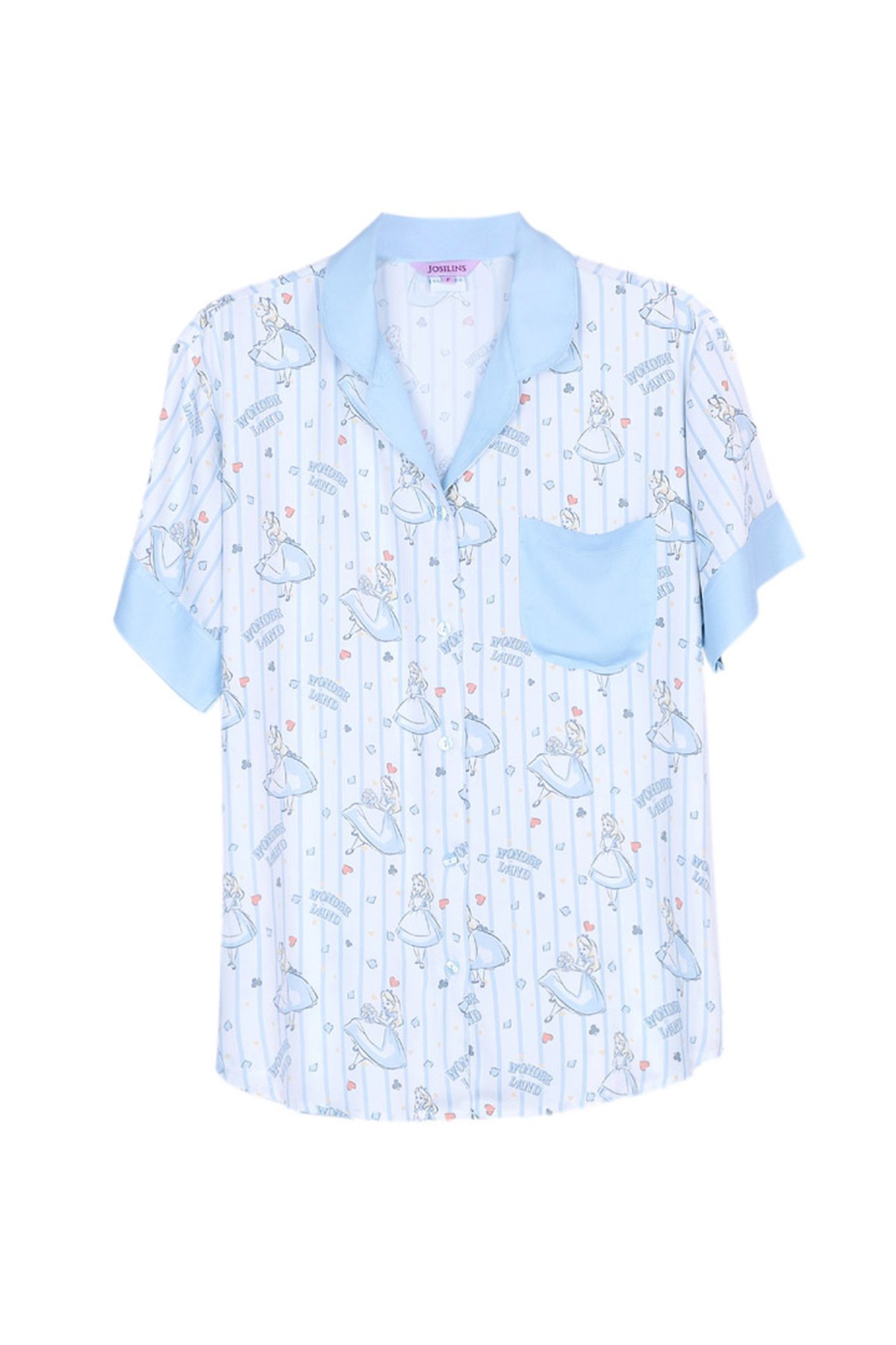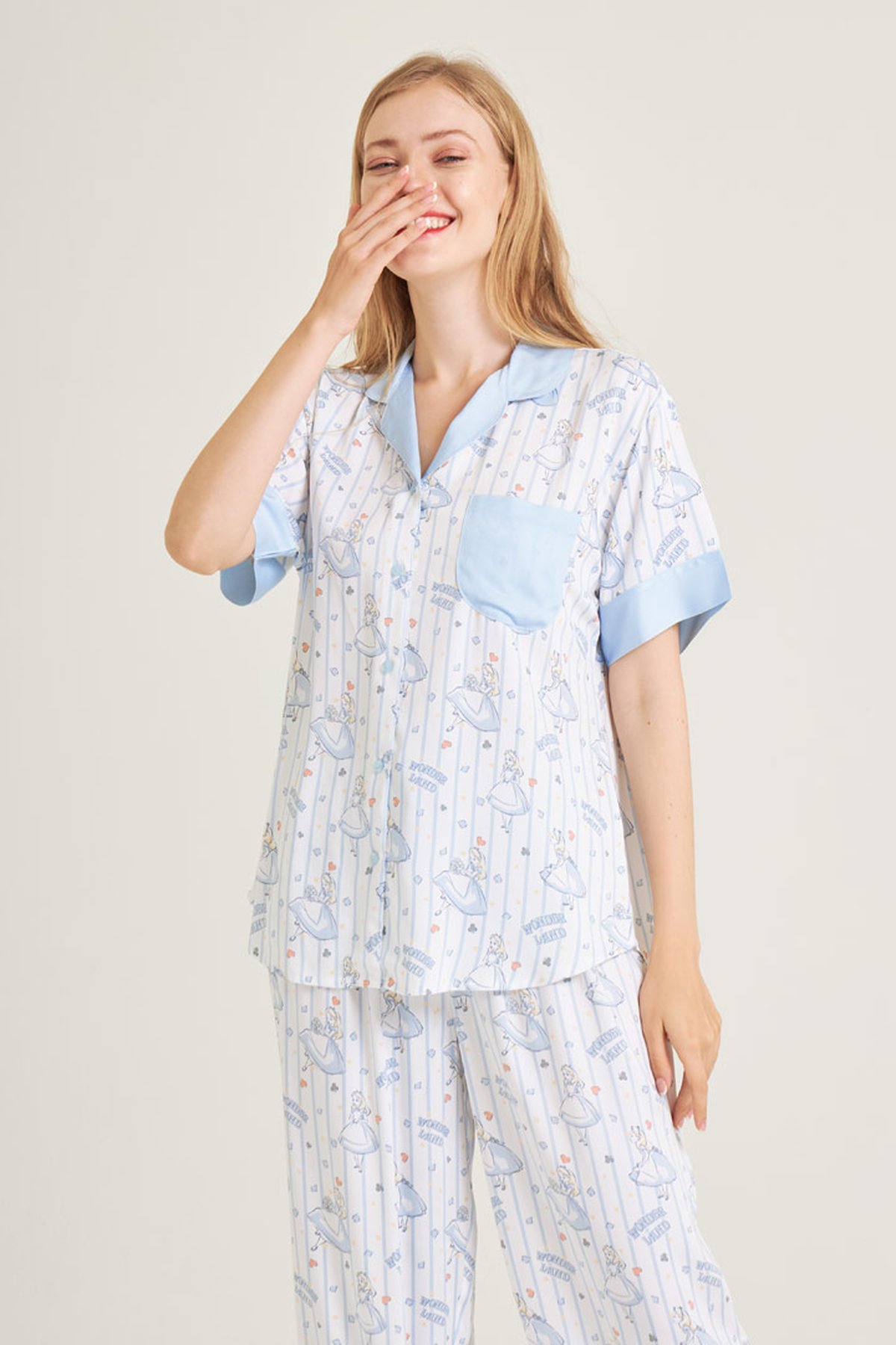 ชุดนอนผู้หญิง JOSILINS เซตแขนสั้นขายาว Alice in Wonderland สีขาว