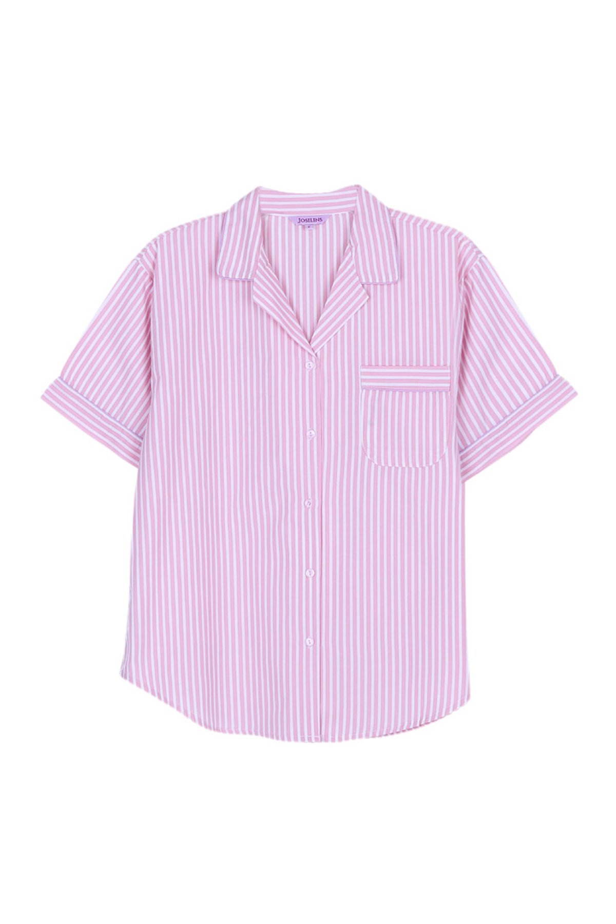 ชุดนอนผู้หญิง JOSILINS เซตแขนสั้นขาสี่ส่วน WINTER STRIPES สีชมพูอ่อน