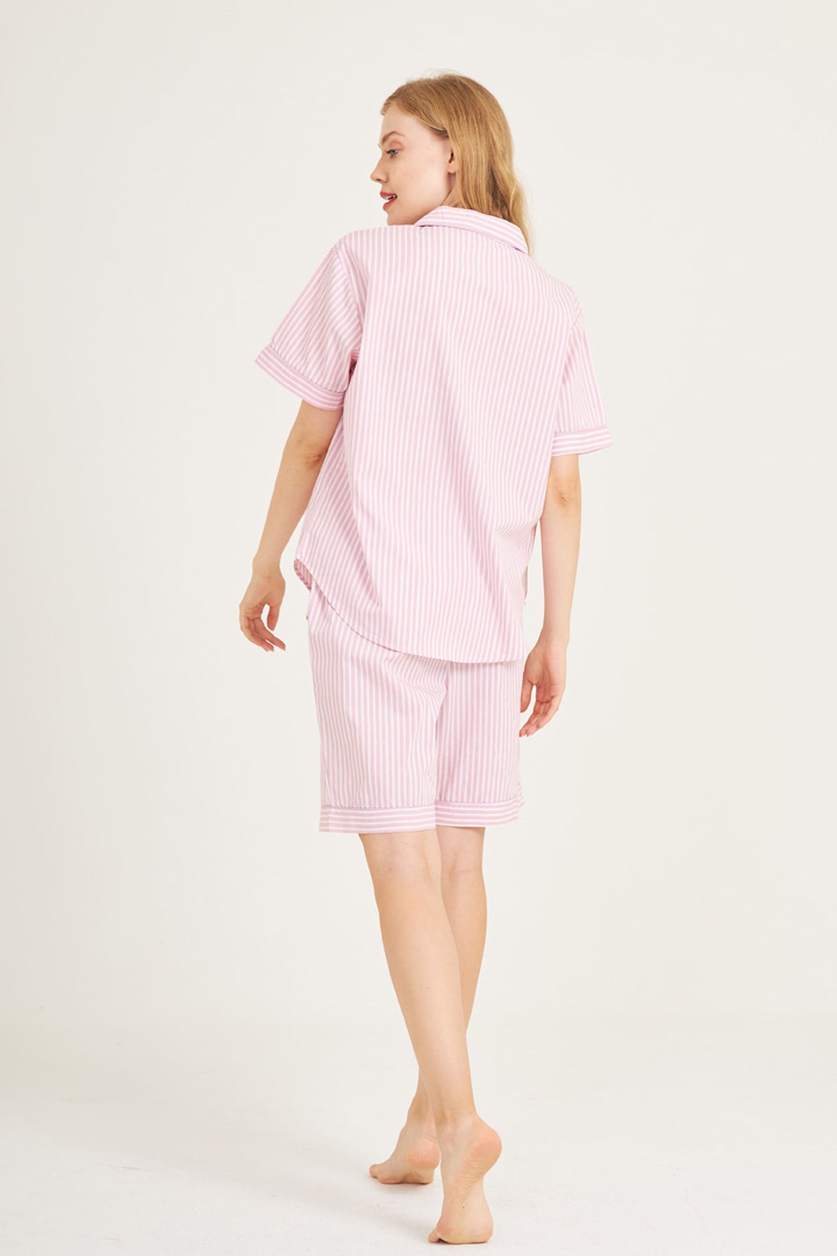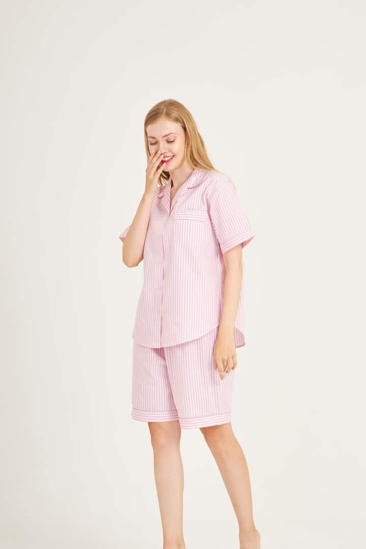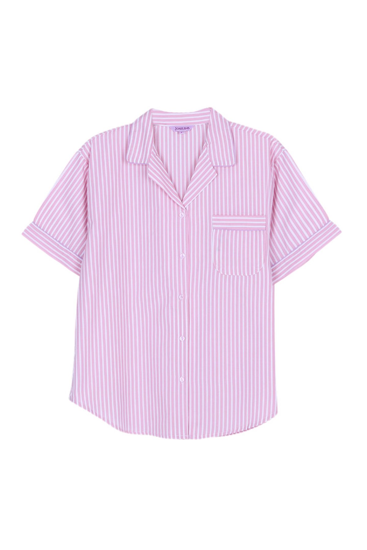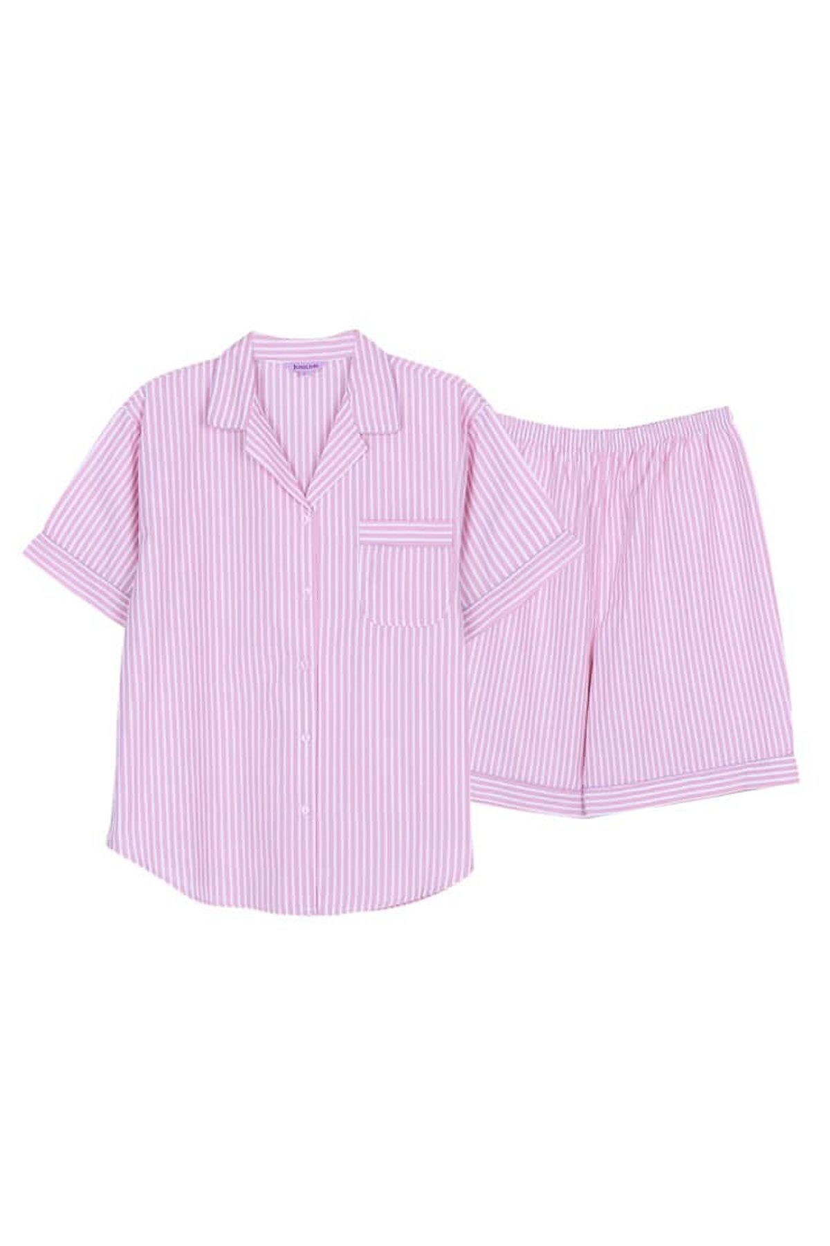 ชุดนอนผู้หญิง JOSILINS เซตแขนสั้นขาสั้น WINTER STRIPES สีชมพูอ่อน