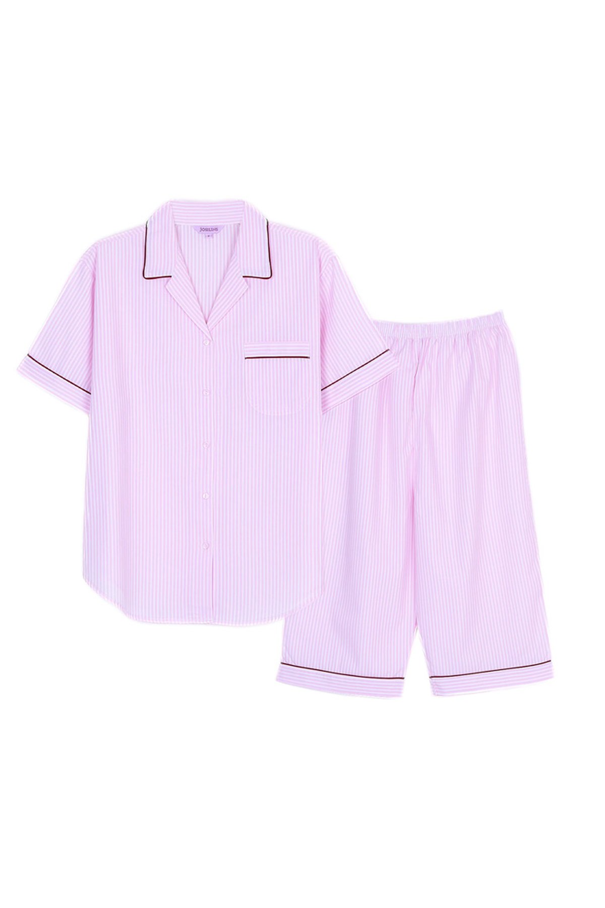 ชุดนอนผู้หญิง JOSILINS เซตแขนสั้นขาสี่ส่วน timeless soft striped สีชมพูอ่อน