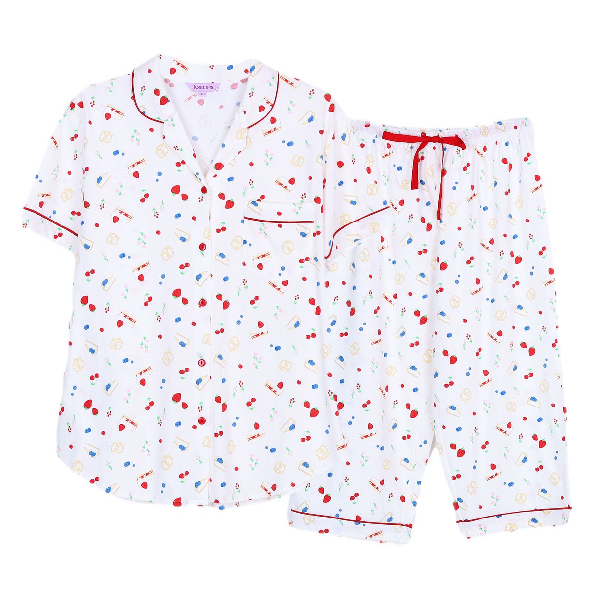 ชุดนอนผู้หญิง JOSILINS เซตแขนสั้นขาสี่ส่วน Bake with love สีครีม XL