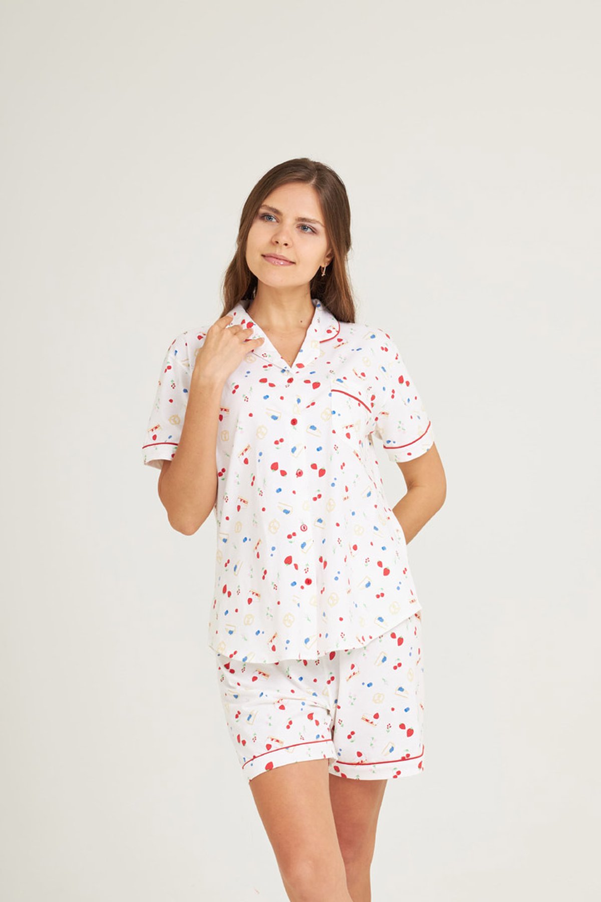 ชุดนอนผู้หญิง JOSILINS เซตแขนสั้นขาสั้น Bake with love สีครีม
