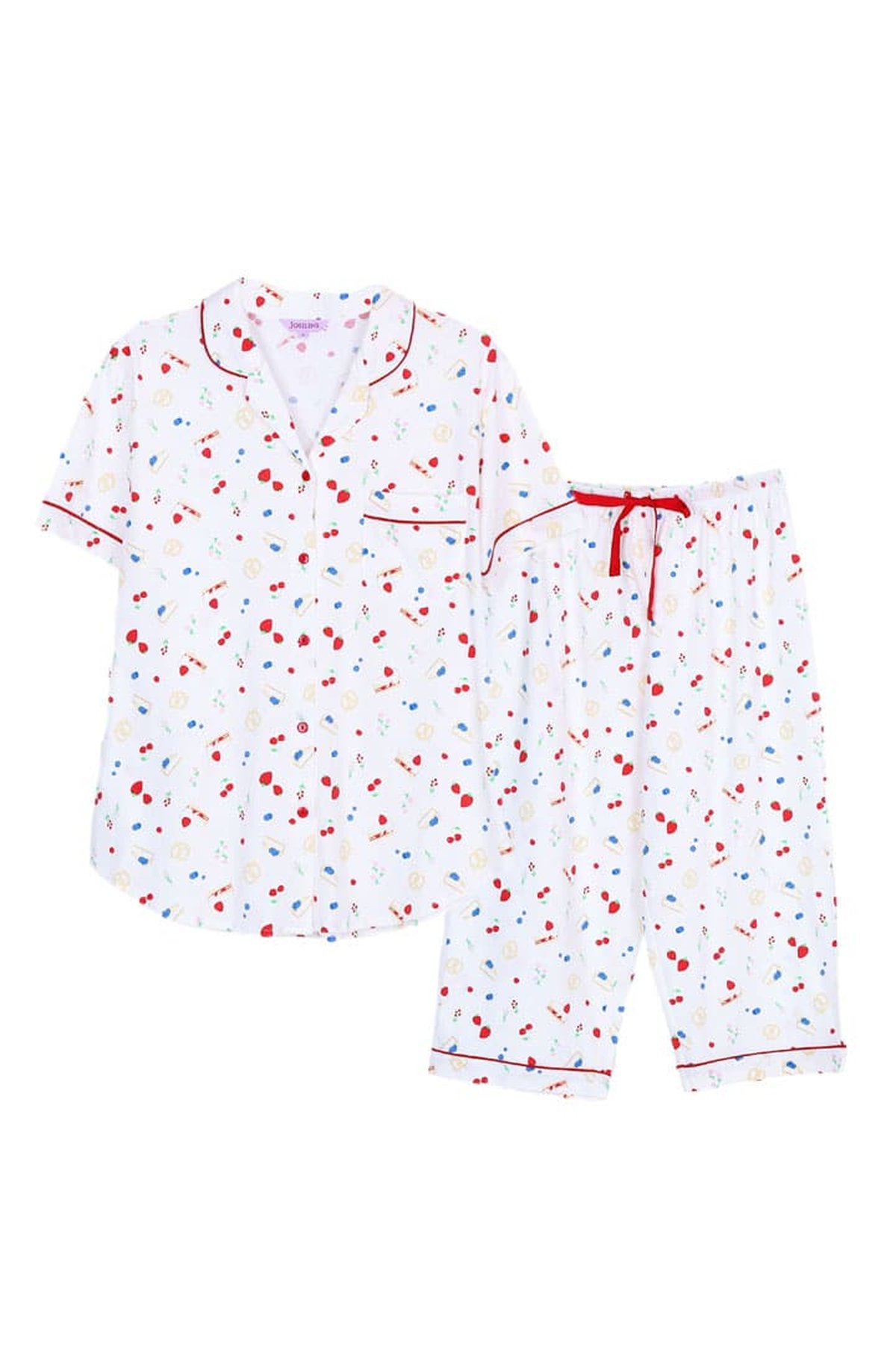ชุดนอนผู้หญิง JOSILINS เซตแขนสั้นขาสี่ส่วน Bake with love สีครีม