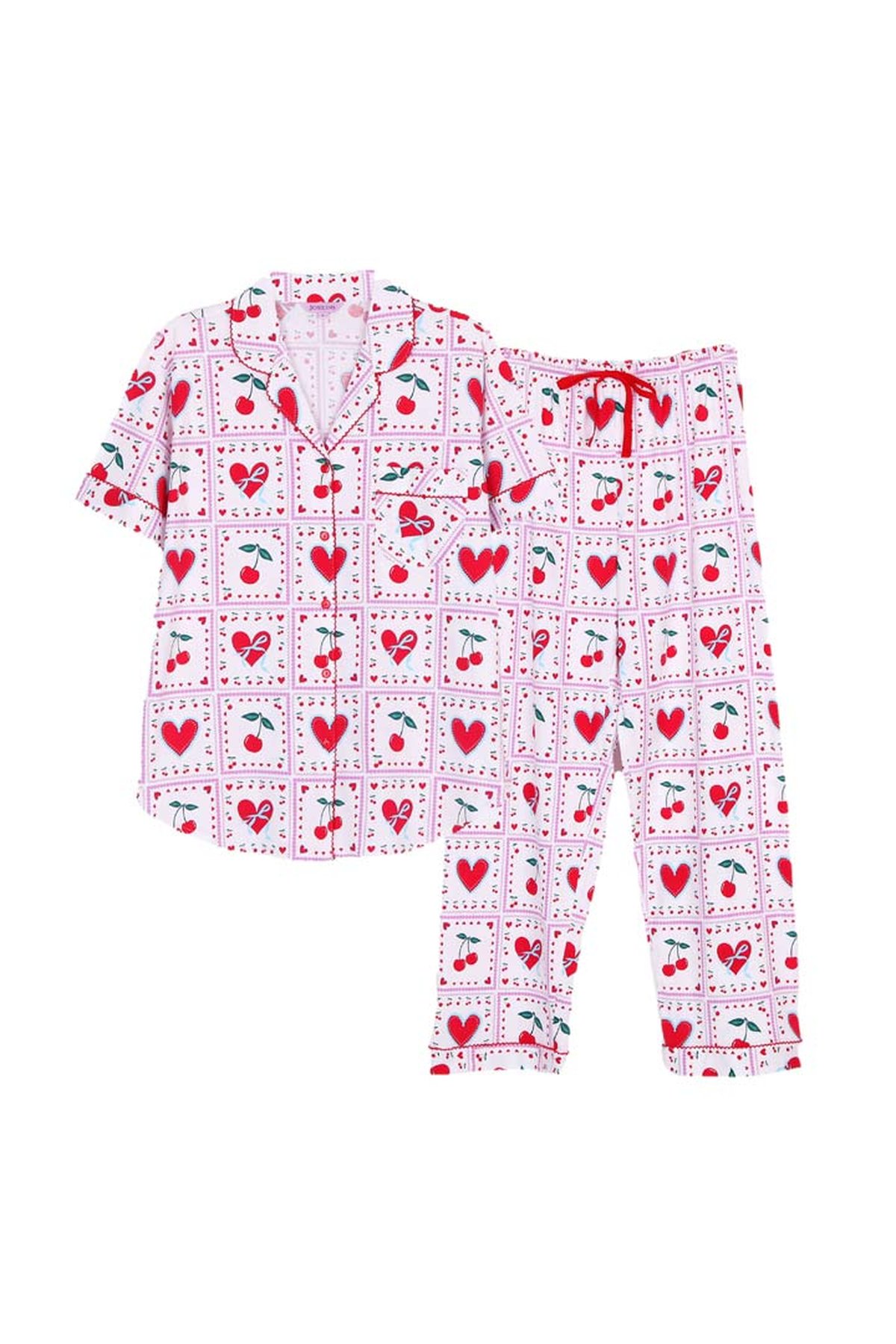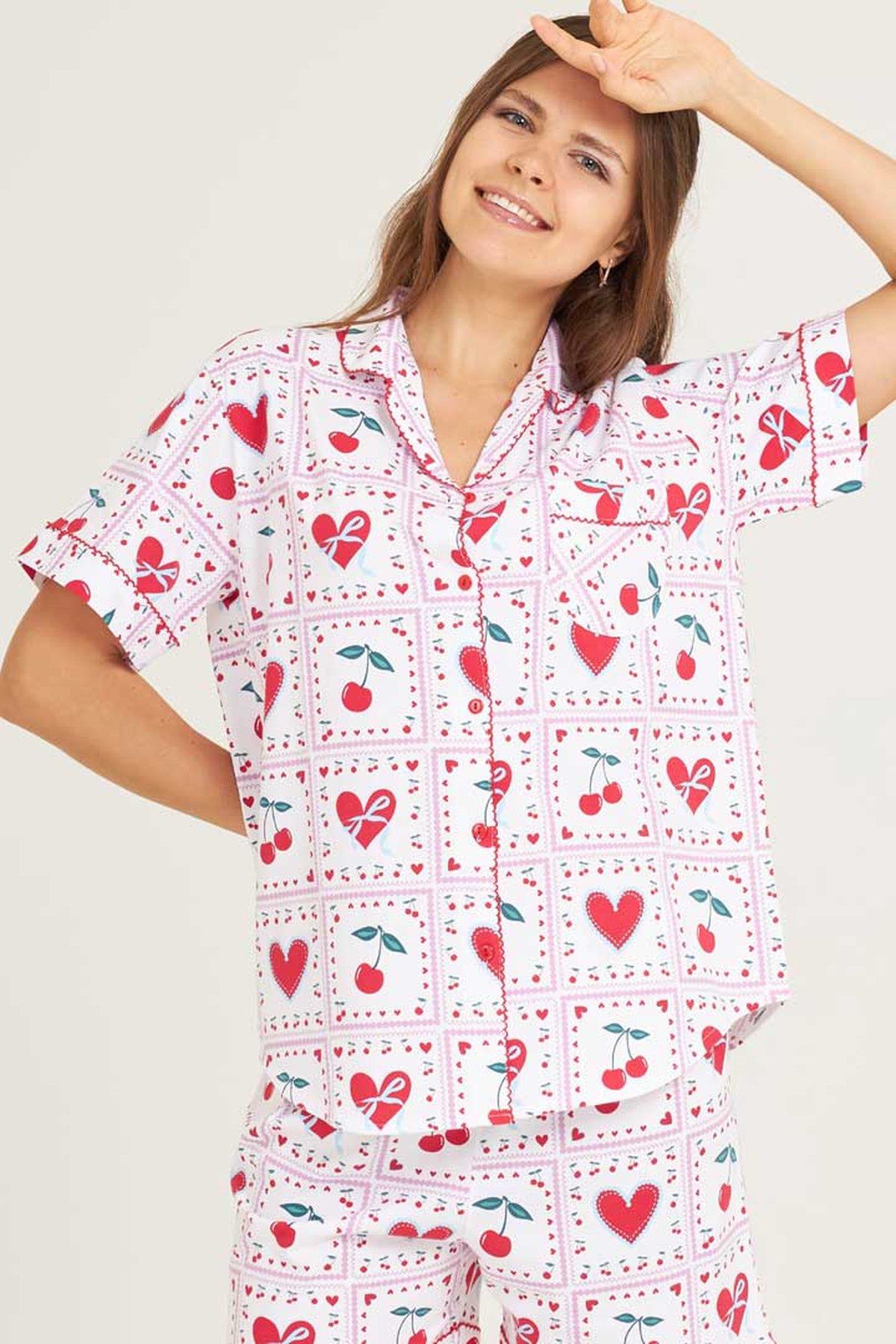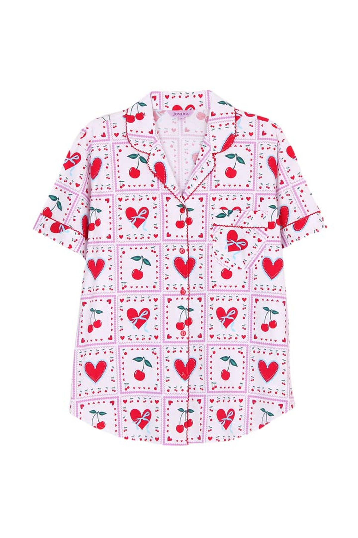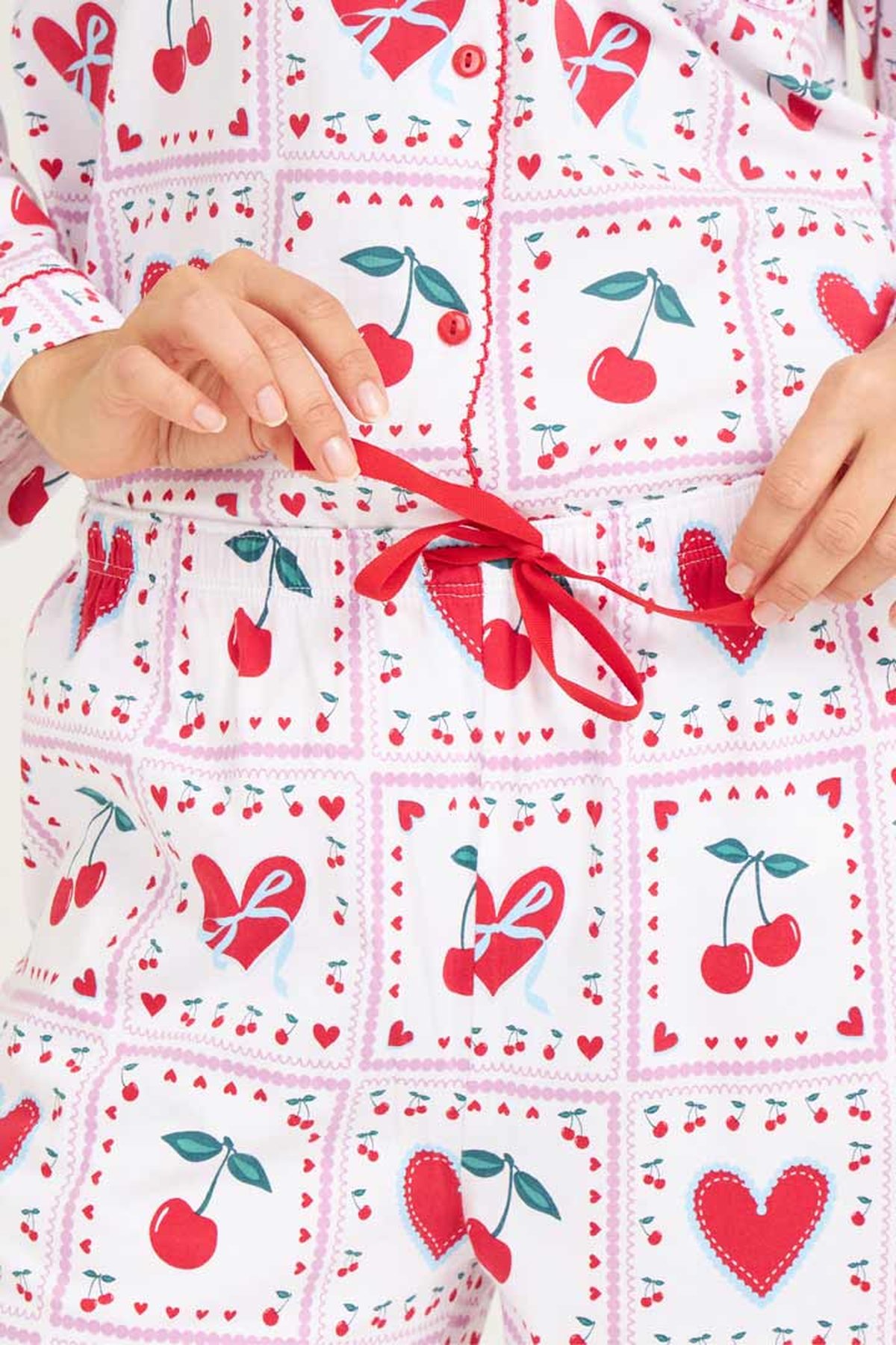 ชุดนอนผู้หญิง JOSILINS เซตแขนสั้นขายาว Cherry Lover สีขาว