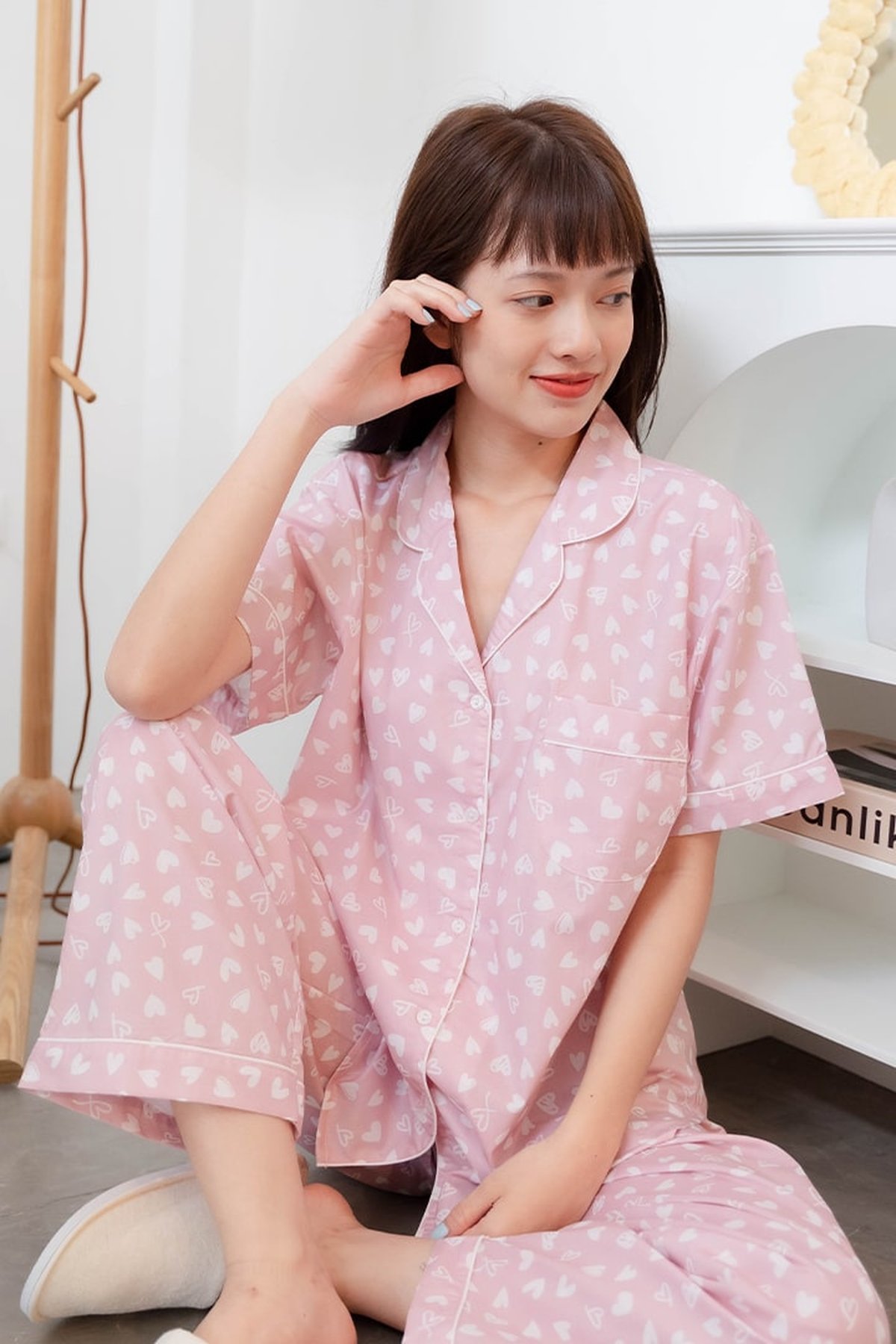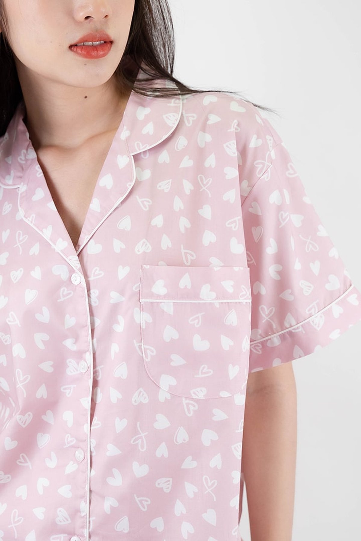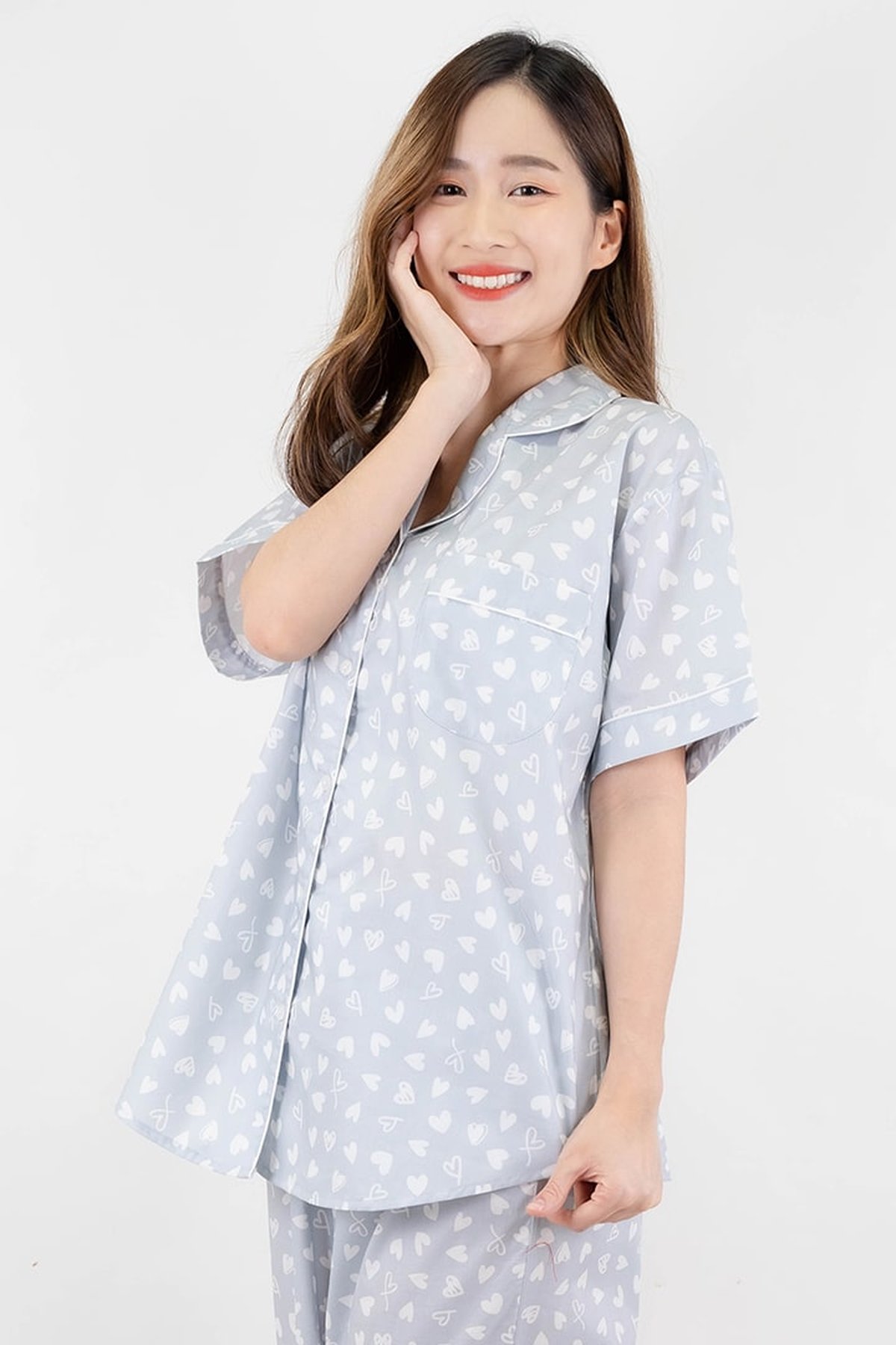 ชุดนอนผู้หญิง JOSILINS เซตแขนสั้นขายาว Mini Heart สีชมพู และสีเทาอ่อน
