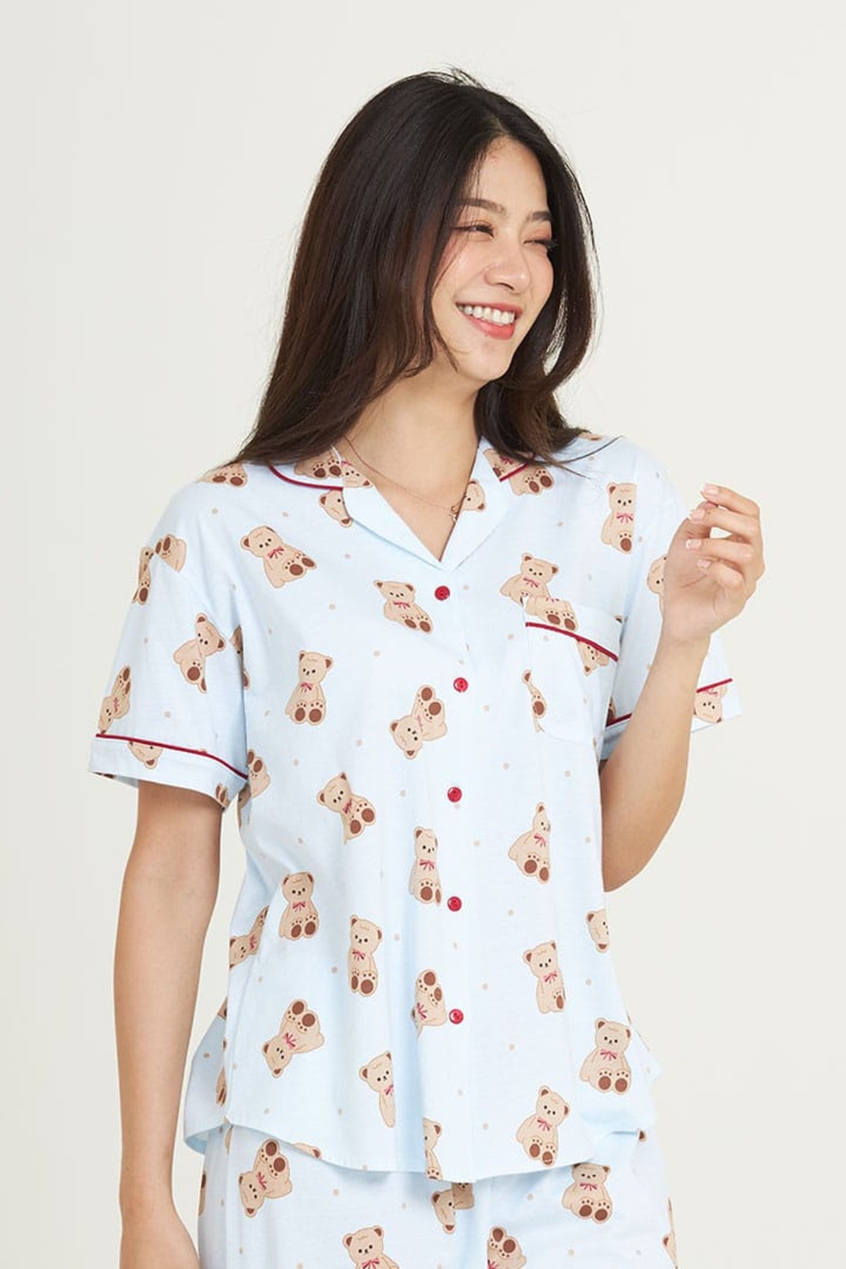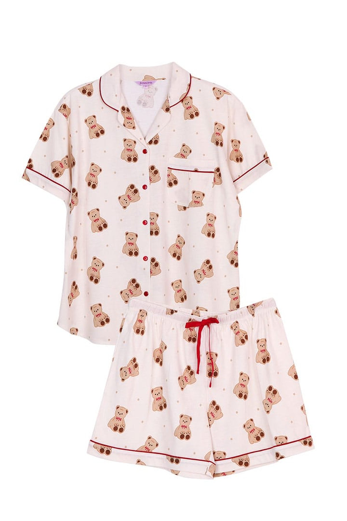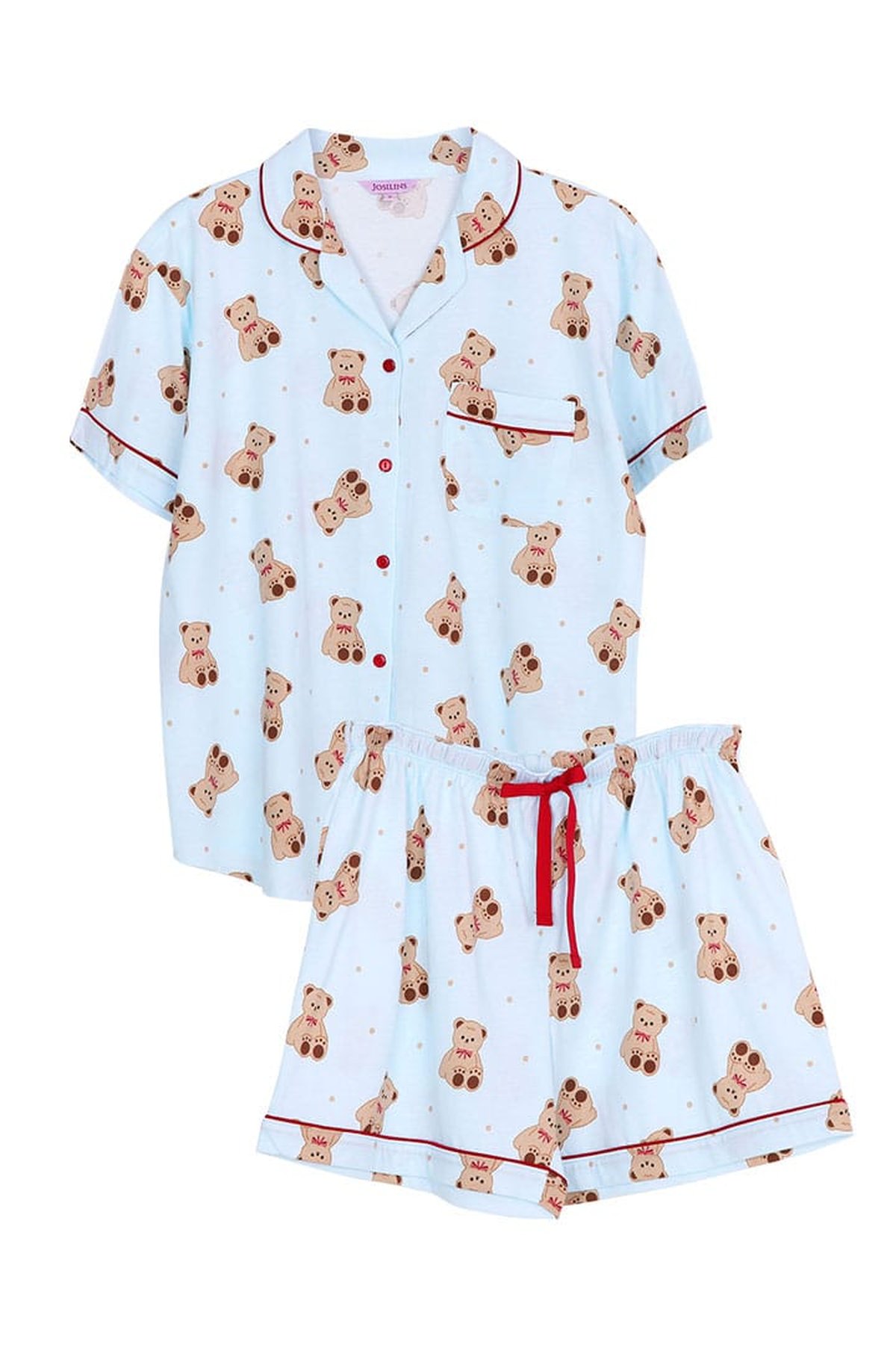 ชุดนอนผู้หญิง JOSILINS เซตแขนสั้นขาสั้น Teddy Bear สีฟ้า สีครีม