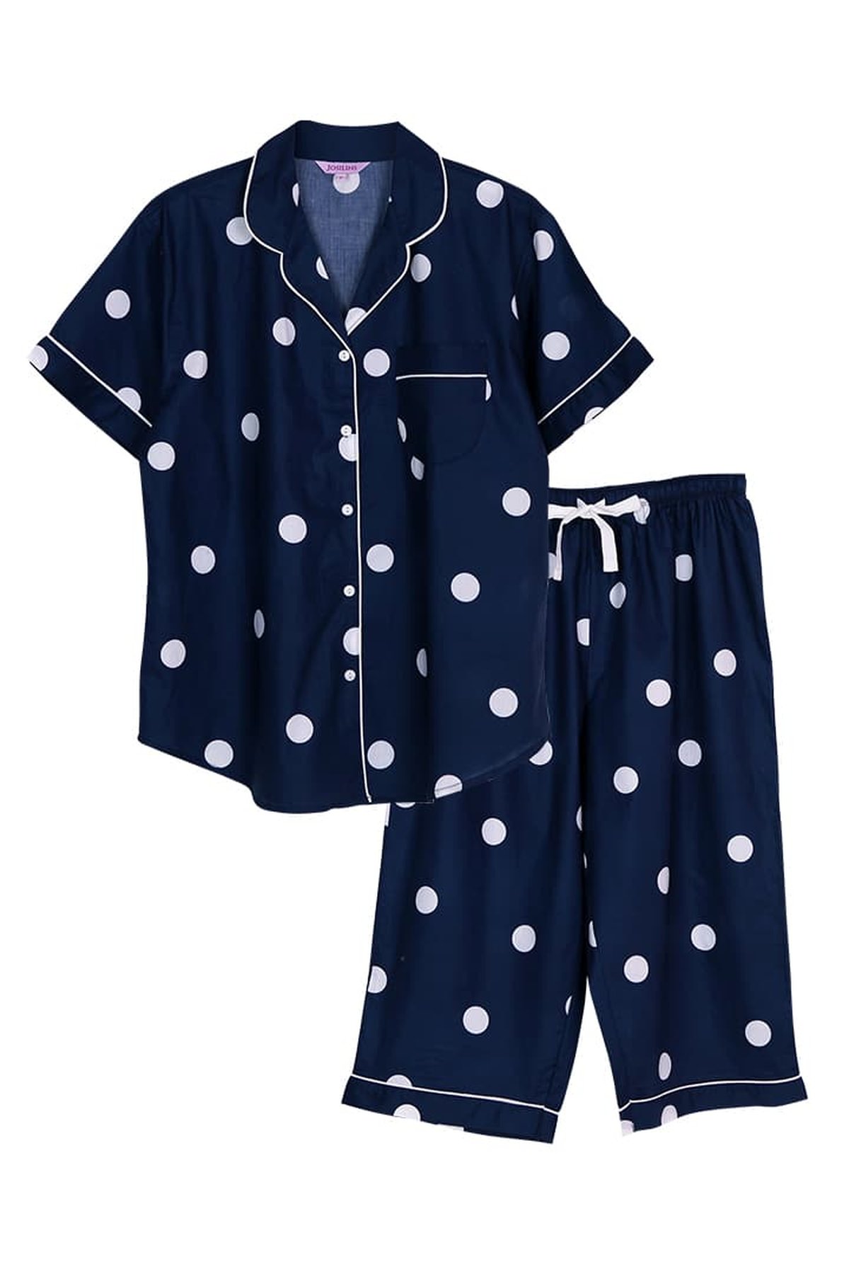 ชุดนอนผู้หญิง JOSILINS เซตแขนสั้นขาสี่ส่วน Super Polka Dot สีกรม และสีเทา
