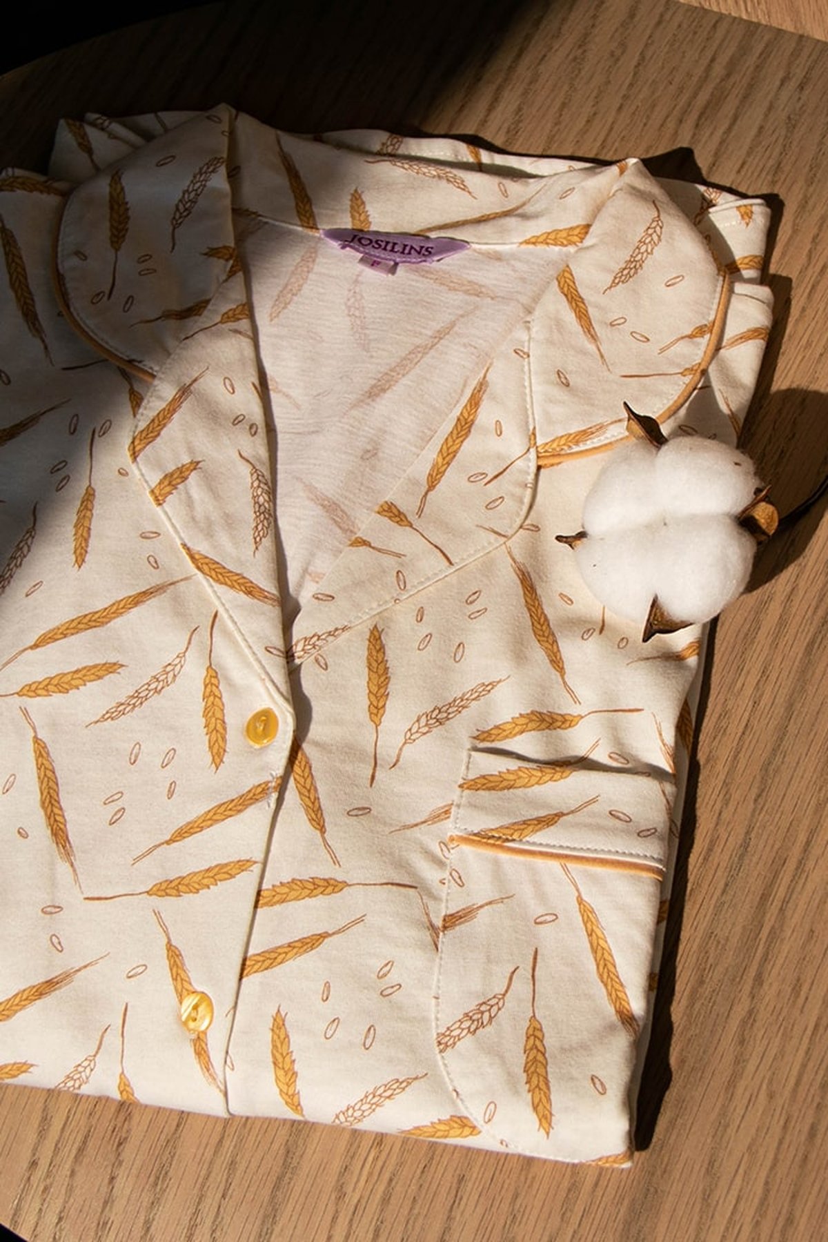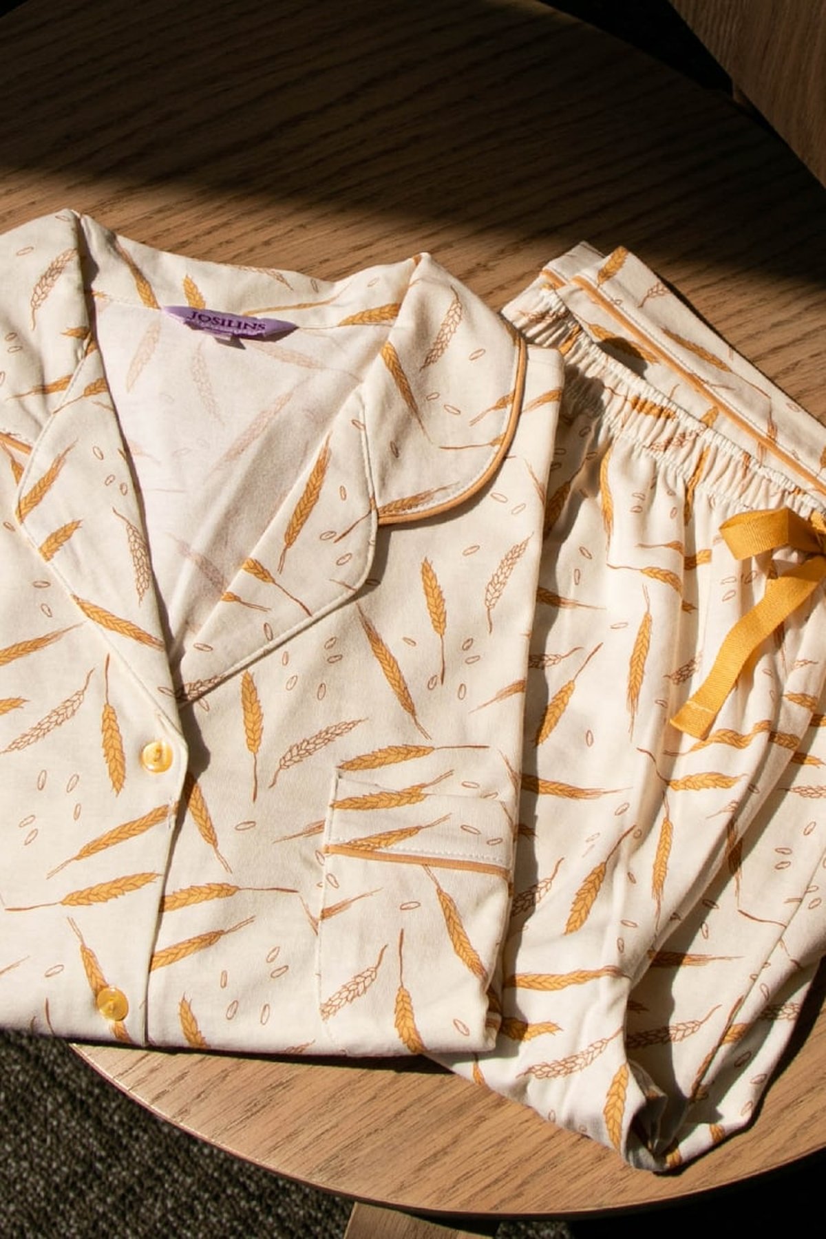 ชุดนอนผู้หญิง JOSILINS เซตแขนสั้นขาสั้น Ears of Rice สีเหลืองอ่อน