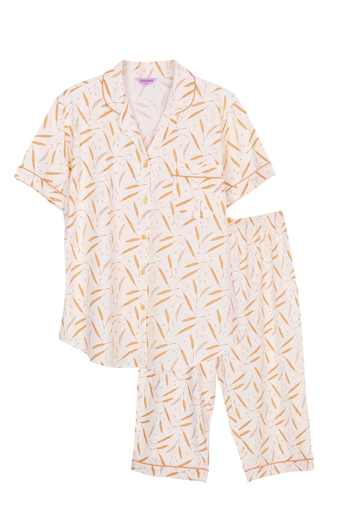 ชุดนอนผู้หญิง JOSILINS เซตแขนสั้นขาสี่ส่วน Ears of Rice สีเหลืองอ่อน