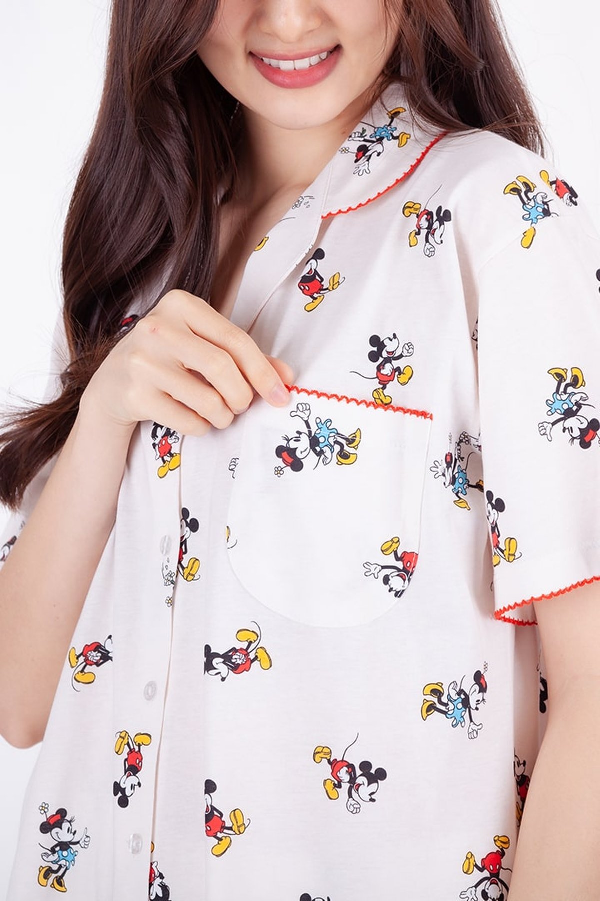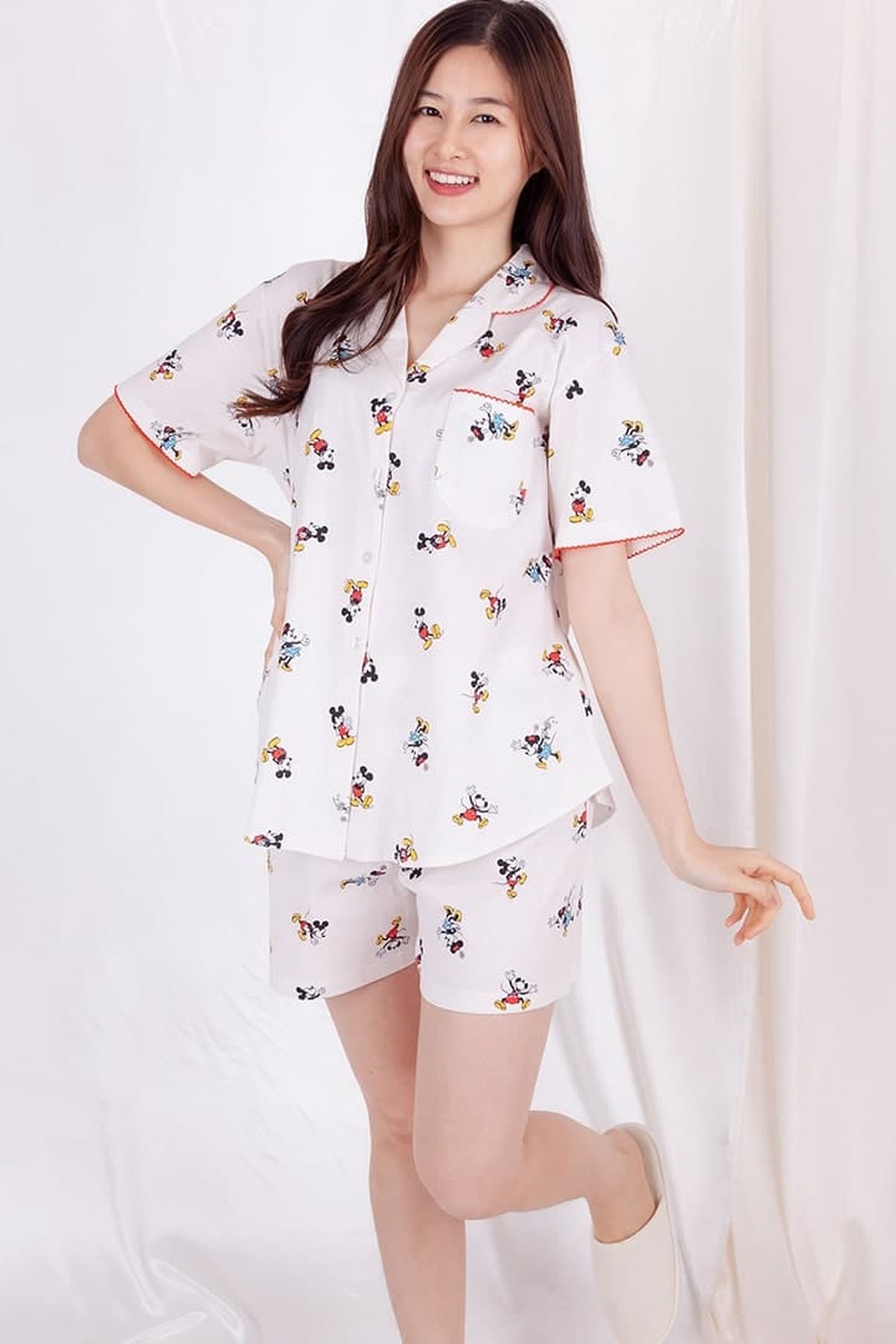 ชุดนอนผู้หญิง JOSILINS เซตแขนสั้นขาสั้น Mickey Mouse actart collection สีครีม