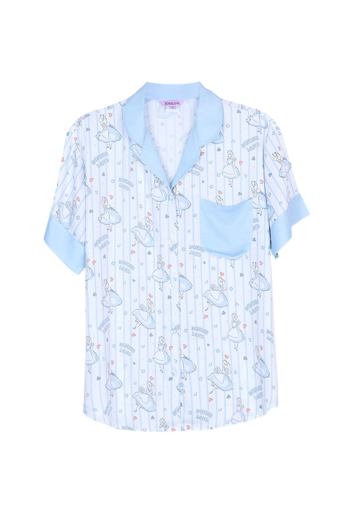 ชุดนอนผู้หญิง JOSILINS เซตแขนสั้นขาสั้น Alice in Wonderland สีขาว