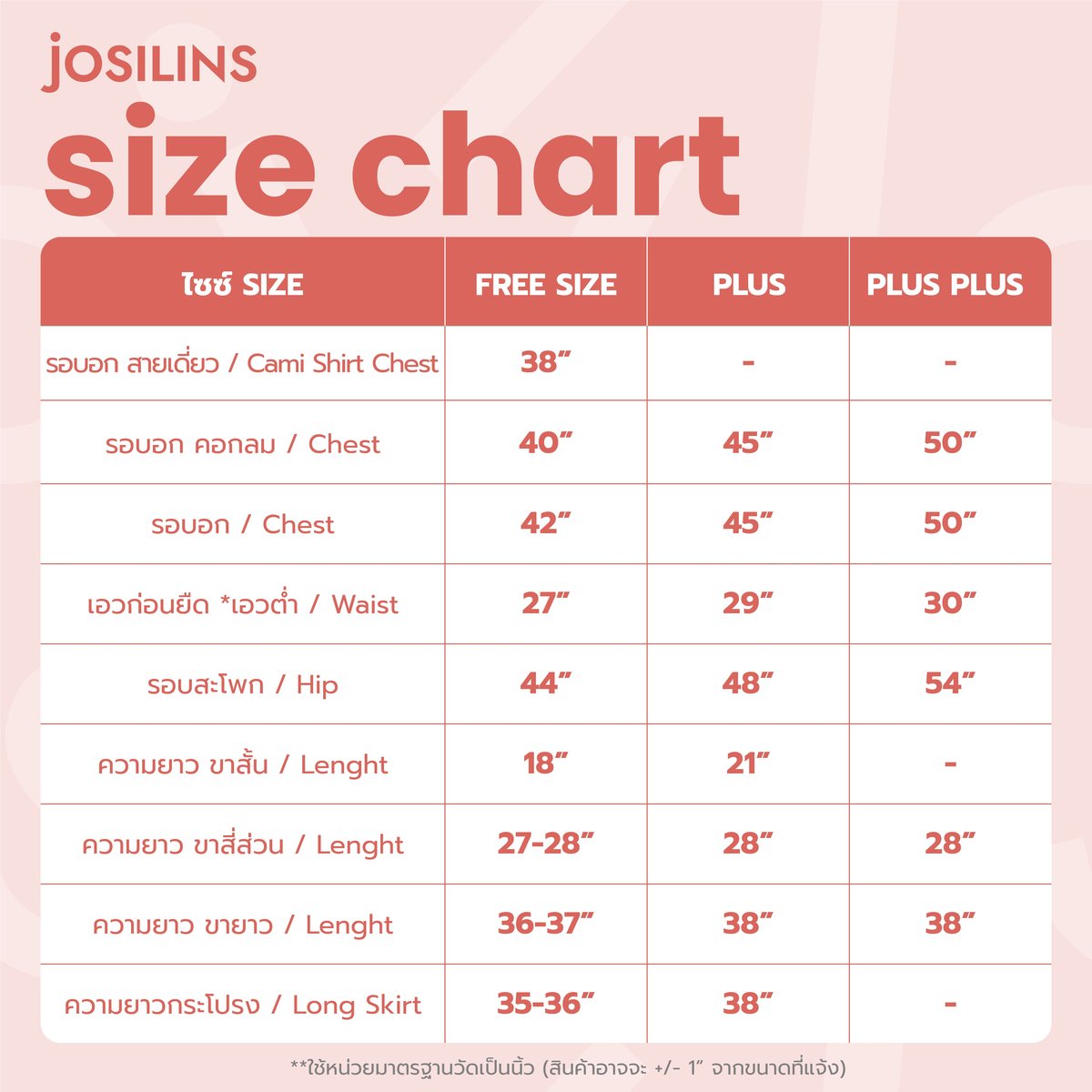 - เซตขนาดฟรีไซส์ (Free Size) เสื้อคอปก ขนาดรอบอก 41 นิ้ว รอบสะโพก 42 นิ้ว (ยางเอวยืดได้สูงสุดไม่เกินรอบสะโพก)