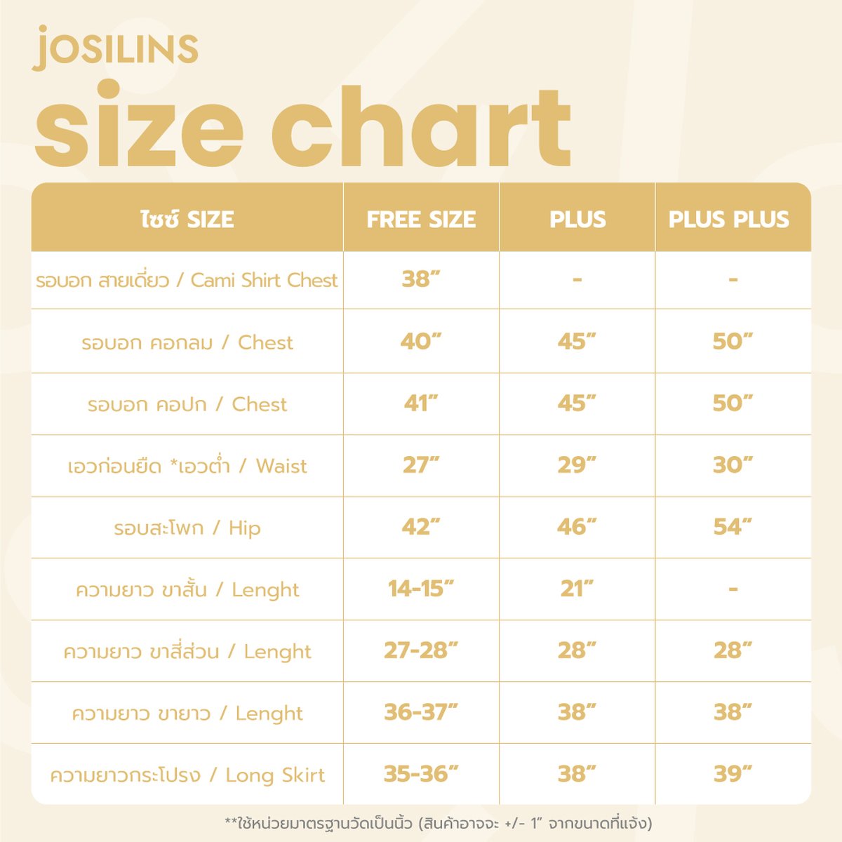 - เซตขนาดพลัสพลัสไซส์ (Plus Plus Size) ขนาดรอบอก 50 นิ้ว รอบสะโพก 54 นิ้ว