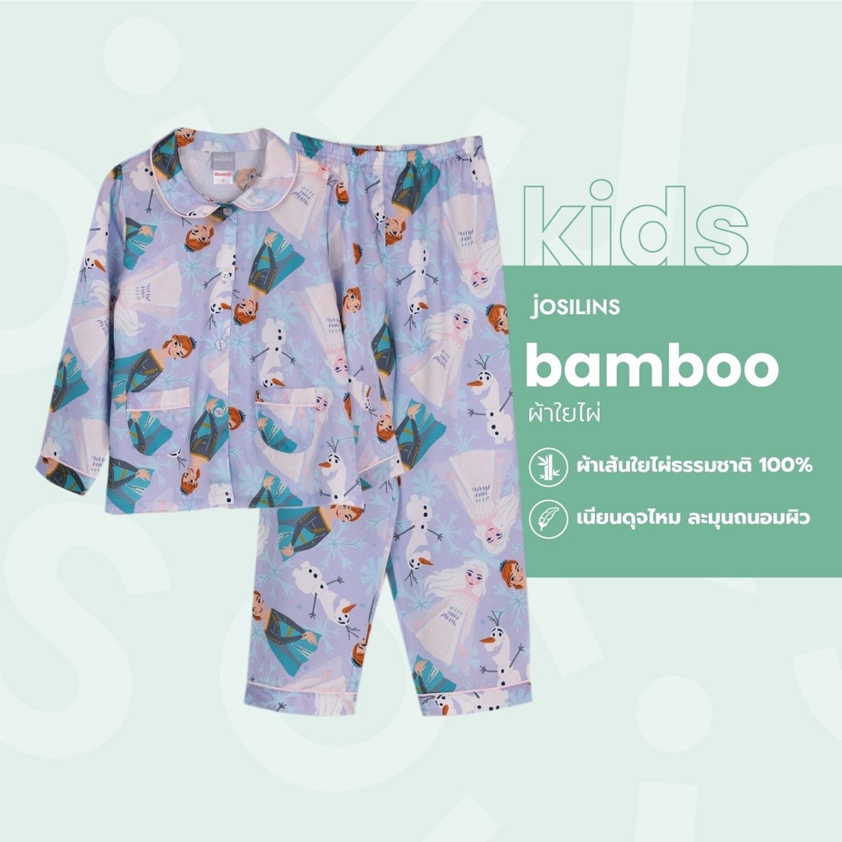 ชุดนอนเด็ก MOMOJI เซตแขนยาวขายาว Disney Frozen II The Snow Queen ผ้าแบมบู