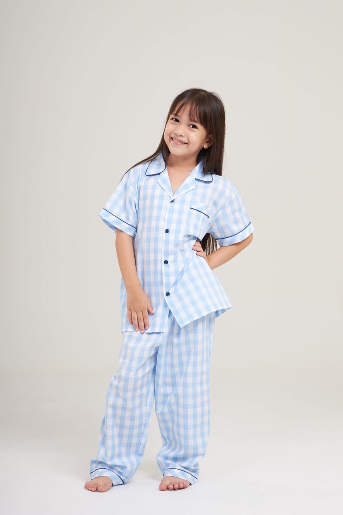 ชุดนอนเด็ก MOMOJI เซตแขนยาวขายาว SKYBLUE Woven สีฟ้า