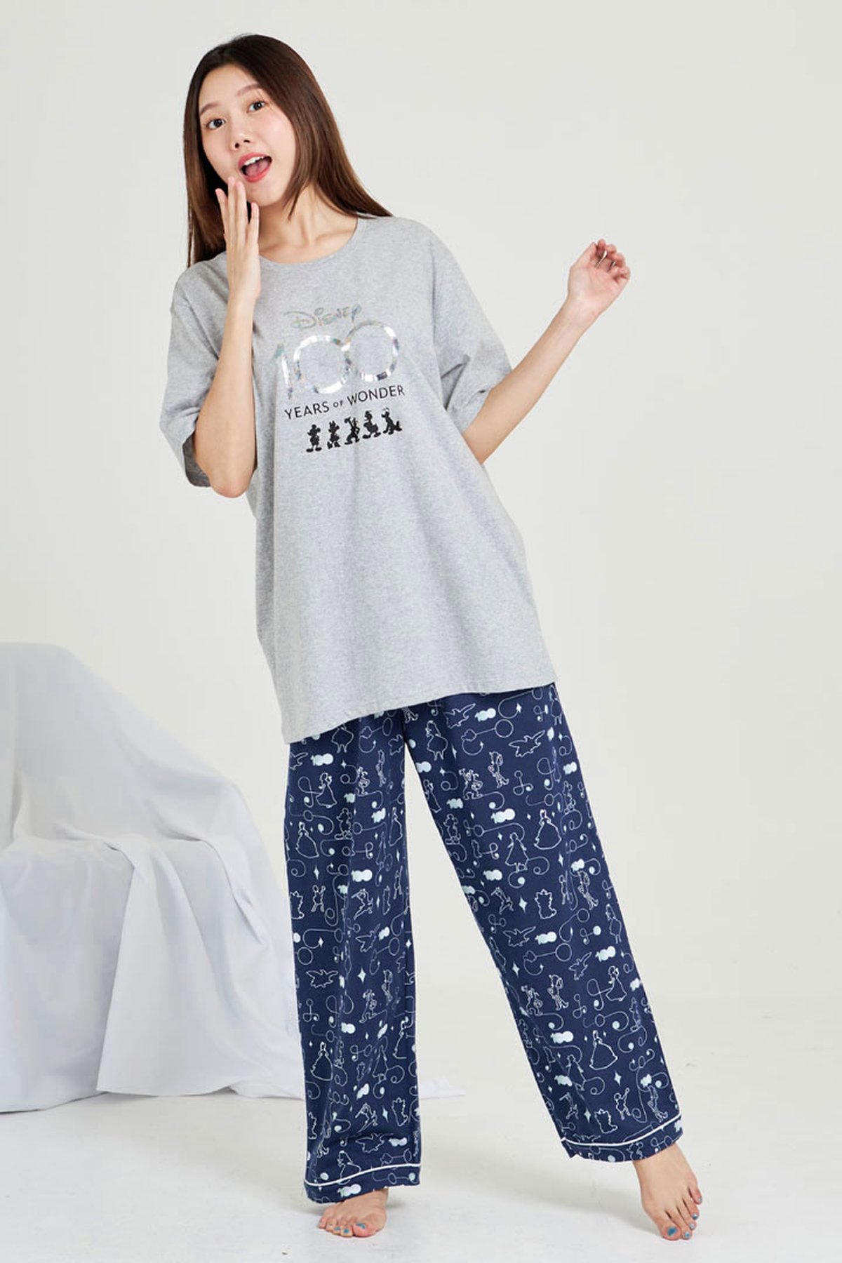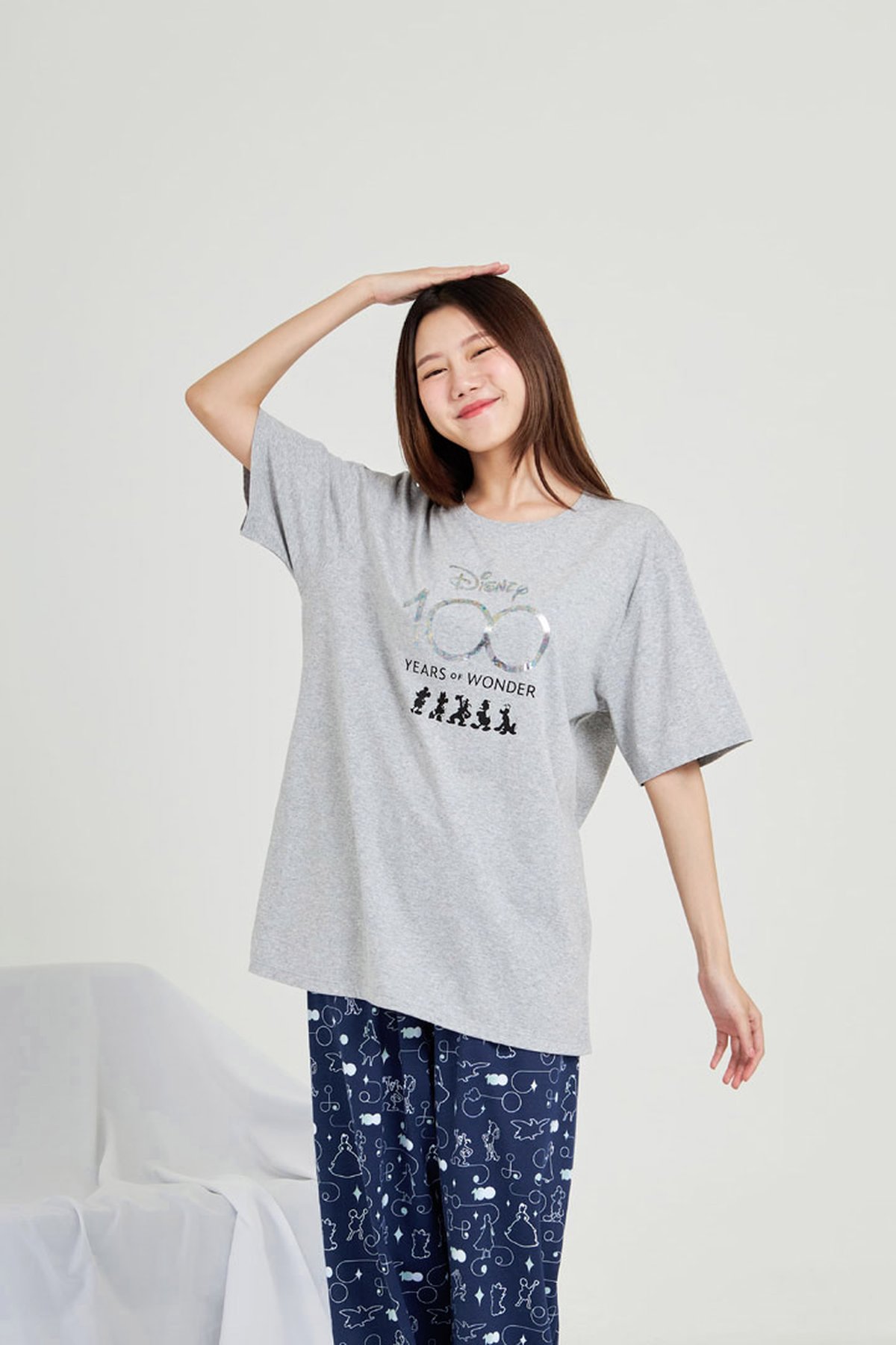 ชุดนอนUnisex JOSILINS เซตเสื้อยืดขายาว Disney 100 years of wonder สีเทาอ่อน