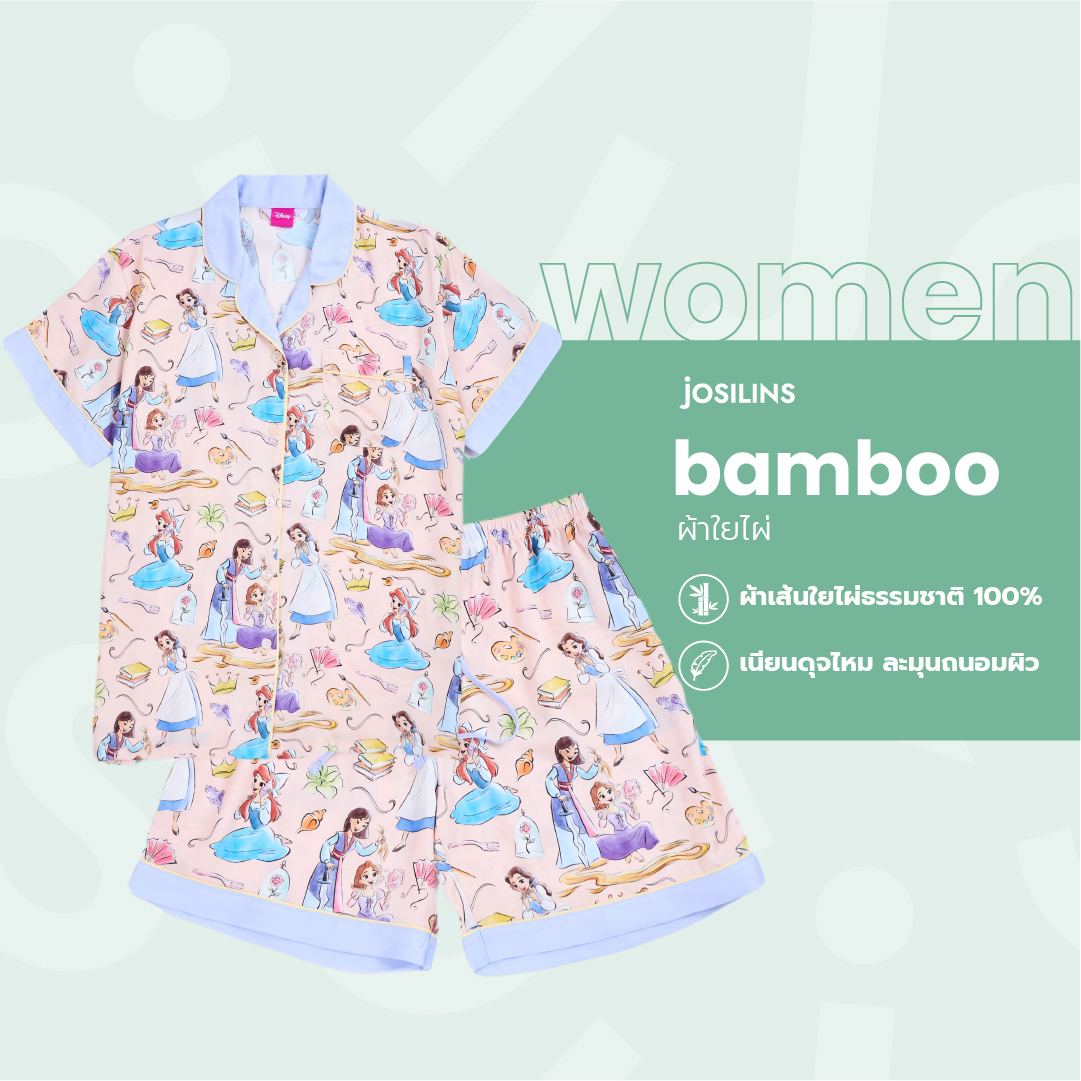 Josilins ชุดนอน ผู้หญิง ลิขสิทธิ์ Disney คอลเลคชัน Princess-Anyone Wear A Crown ฟรีไซส์ และ XL ผ้าแบมบูใยไผ่