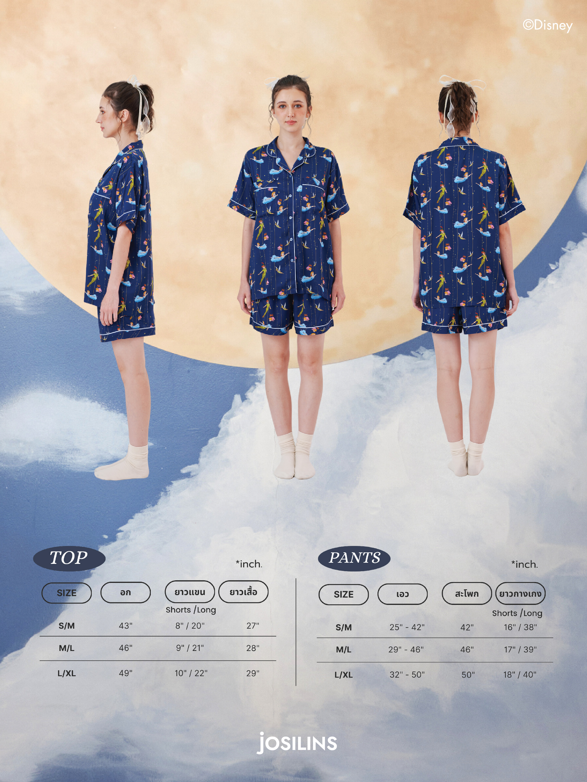 Josilins ชุดนอน ผู้ใหญ่ ลิขสิทธิ์ Disney คอลเลคชัน Peter Pan In Neverland ผ้าแบมบูใยไผ่ Free Size SM ML LXL