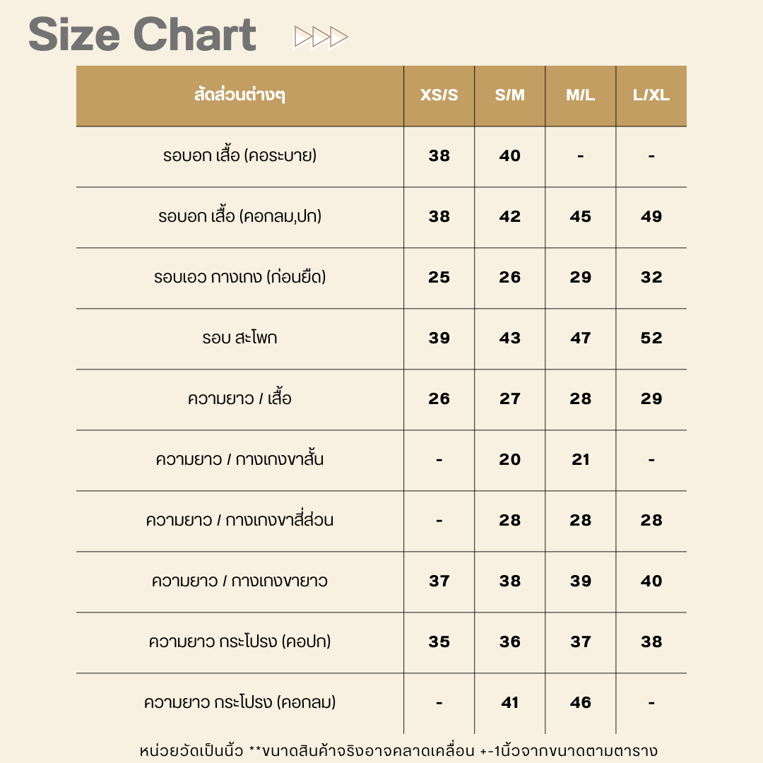 ** สินค้าจริงอาจจะ +-1นิ้วจากขนาดตารางที่แจ้ง กรุณาเผื่อไซส์ **