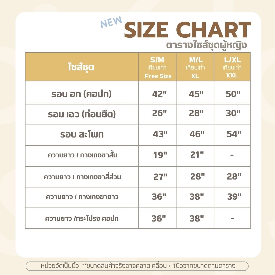 ** สินค้าจริงอาจจะ +-1นิ้วจากขนาดตารางที่แจ้ง กรุณาเผื่อไซส์ **