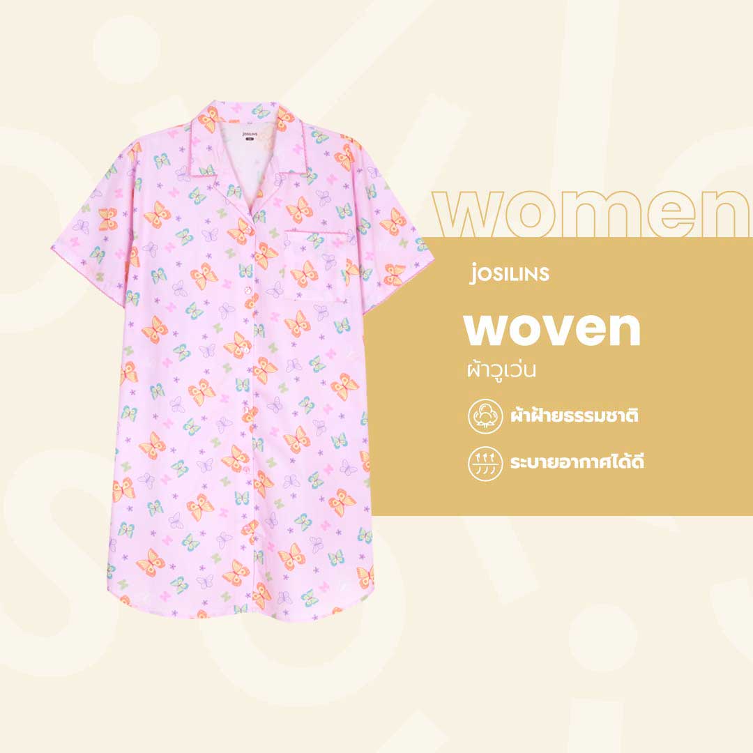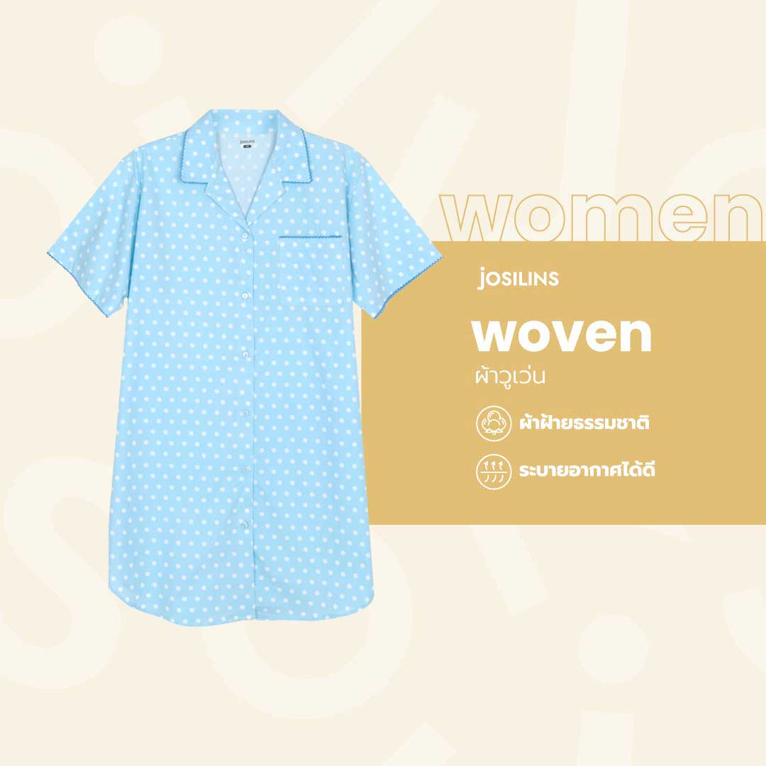 Josilins ชุดนอน ชุดอยู่บ้าน ผู้หญิง กระโปรง คอปก เดรสสั้น ผ้าวูเว่น SM 2025