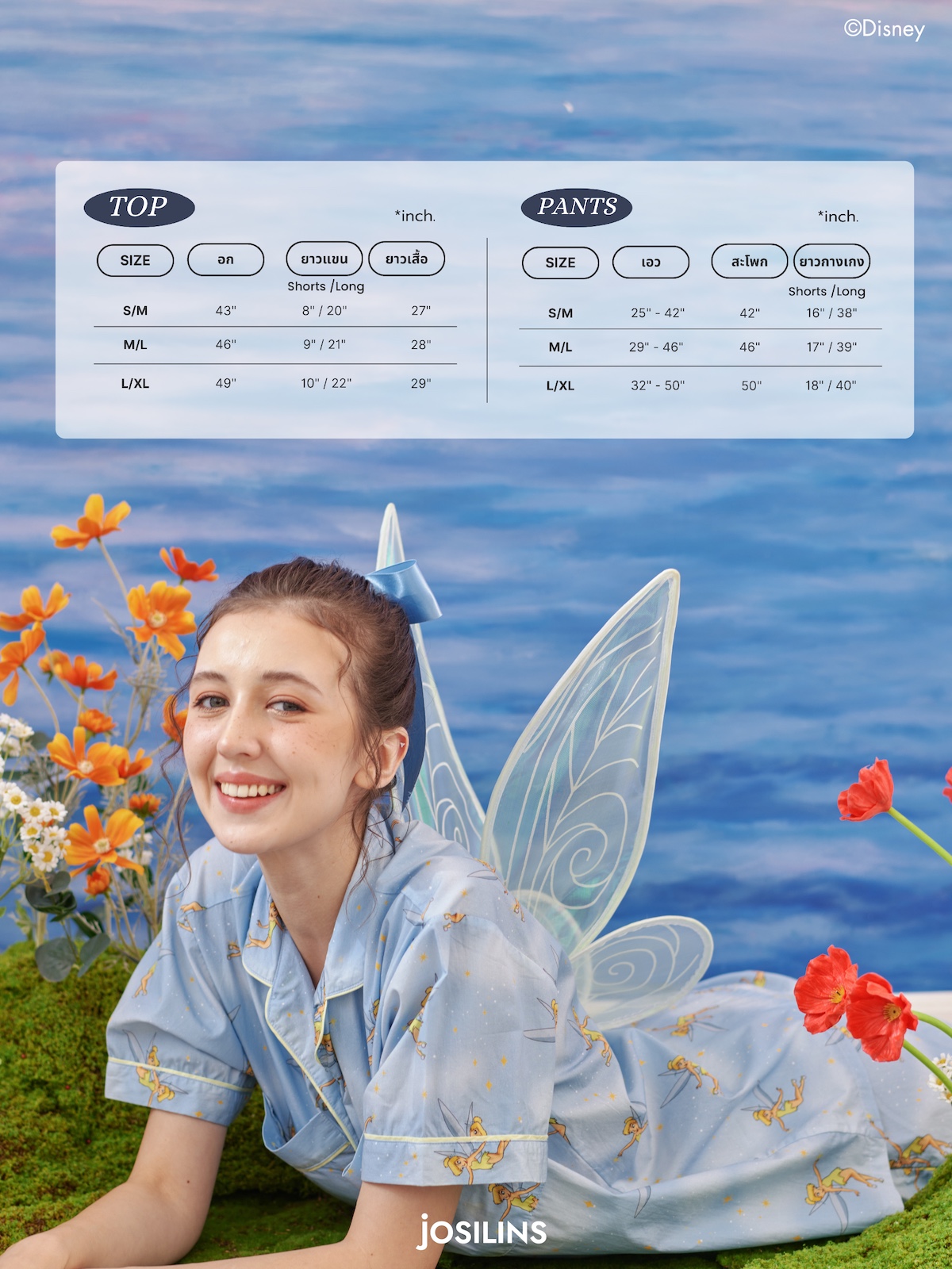 Josilins ชุดนอน ผู้ใหญ่ ลิขสิทธิ์ Disney คอลเลคชัน Tinker Bell In Neverland ผ้าคอตตอนวูเว่น SM ML LXL
